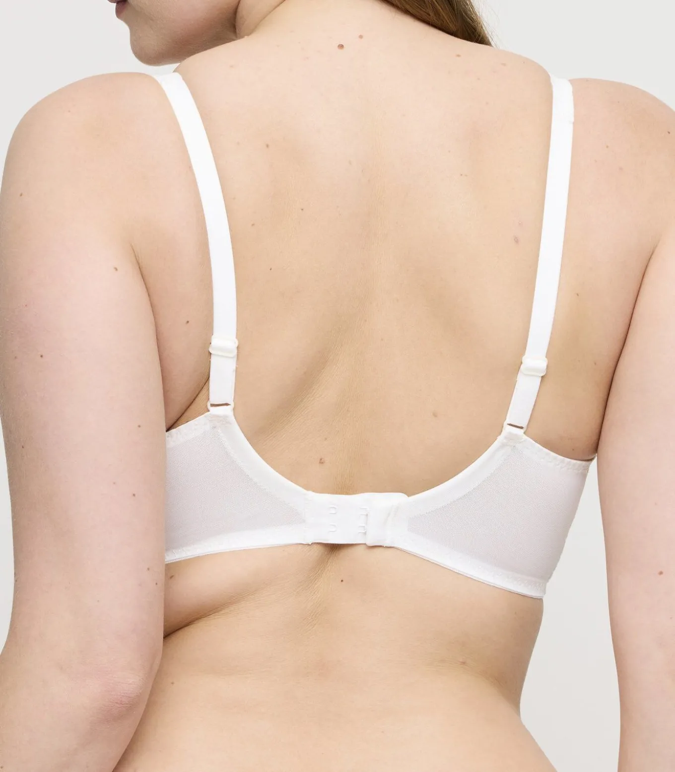 Volle cup bh met een beugel en een stevige dubbeling. Deze snit bedekt je borsten comfortabel. De gedubbelde ondercups geven grotere cupmaten een comfortabele lift, het zijstukje centreert je boezem voor een rond silhouet.