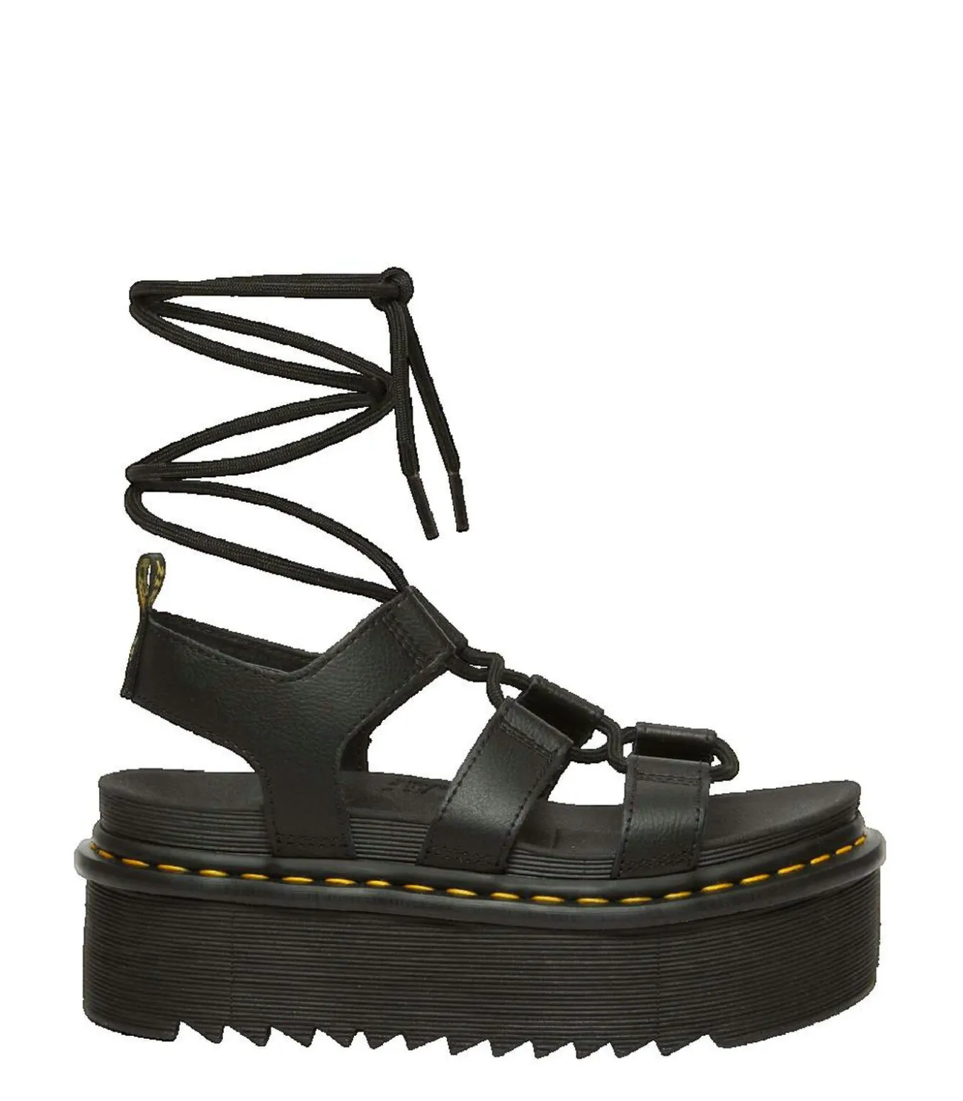 De Nartilla sandalen van Dr. Martens zijn een iconische klassieker, herkenbaar aan hun extra lange veters. Deze versie heeft een dikke Quad Zebrilus zool voor een unieke uitstraling, met touwveters, kenmerkende gele stiksels en een hieltab.