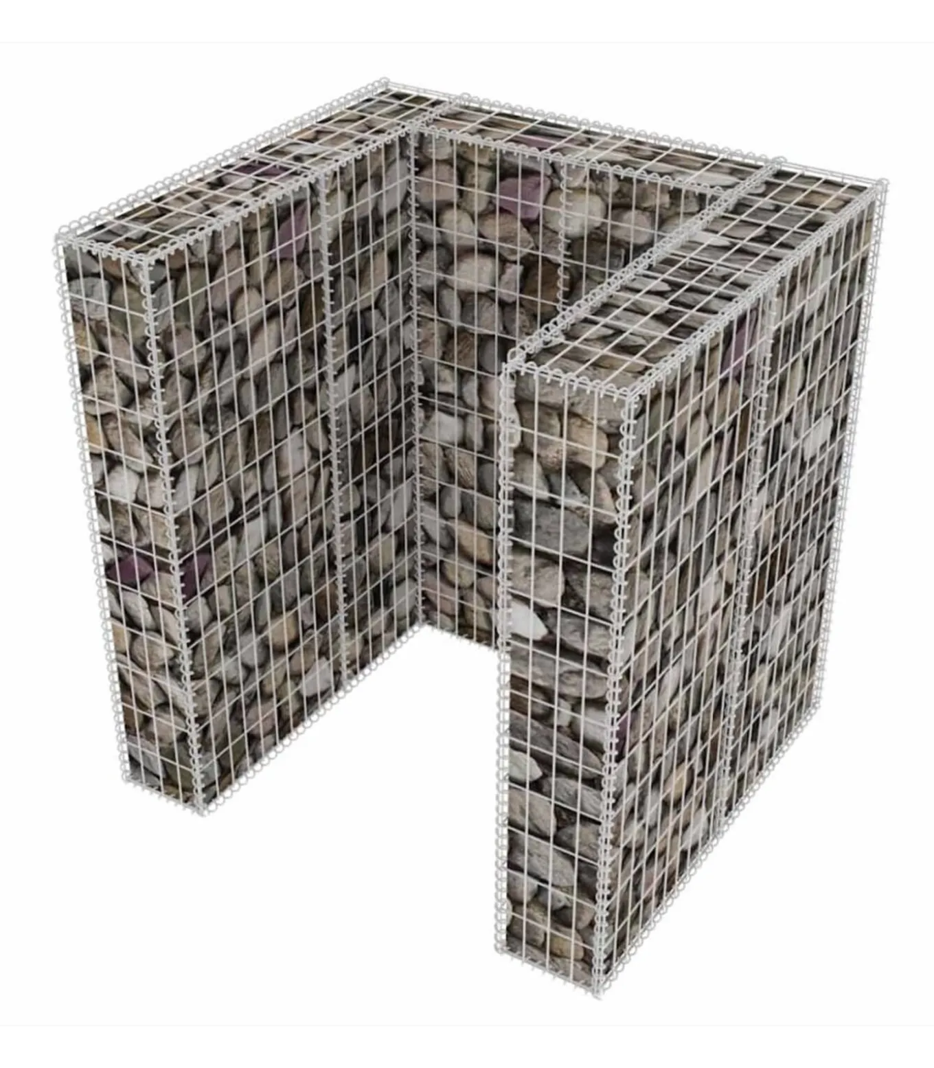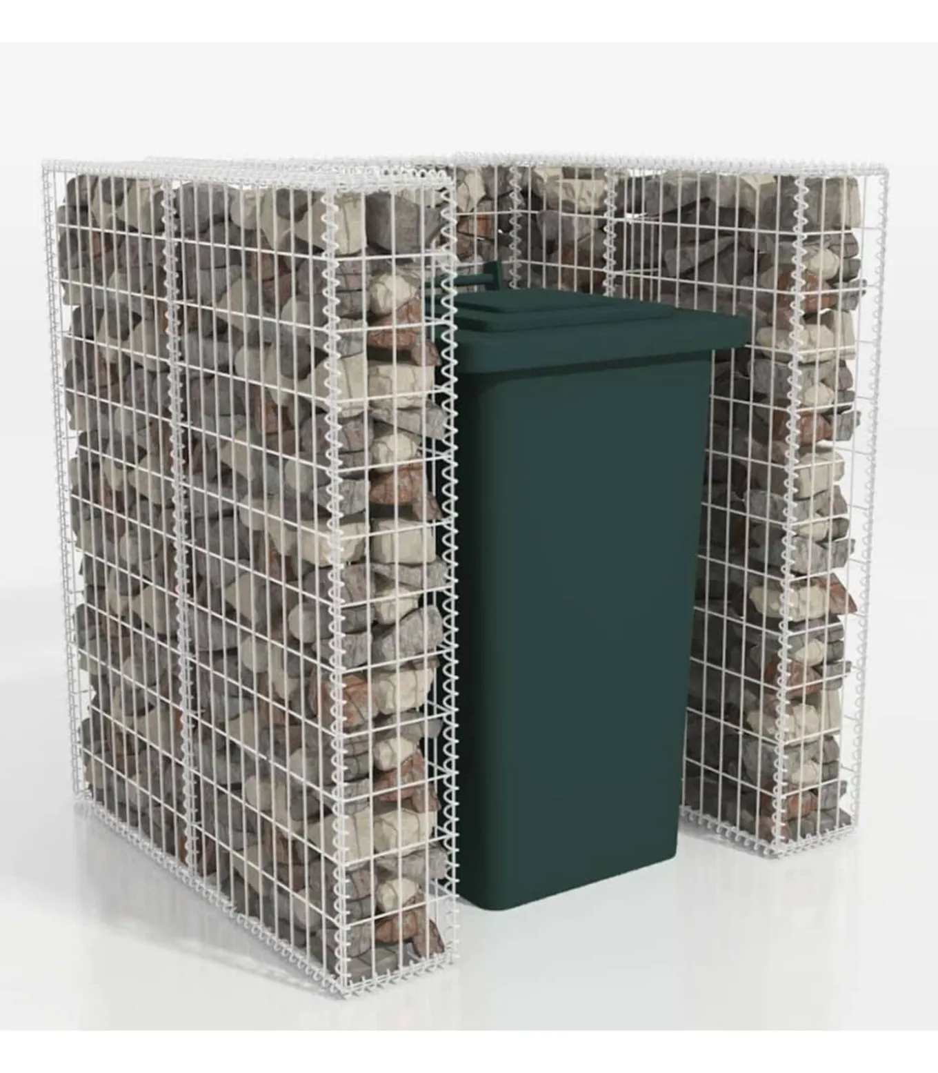 Deze stabiele en duurzame afvalcontainer schanskorf ombouw is gemaakt van roest– en weerbestendig gegalvaniseerd staal. Het gaasrooster is gevormd door de horizontale en verticale draden aan elkaar te lassen bij iedere kruising. De gabion is erg stevig dankzij de draaddiameter van 3,5 mm. De deksels aan de boven– en onderkant van de korf houden de inhoud op zijn plek.