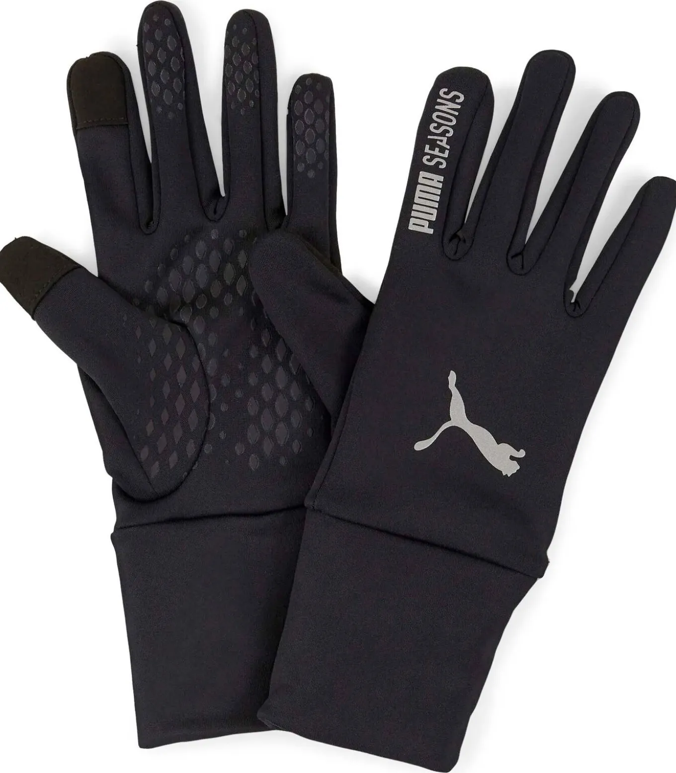 Kleur: PUMA Black. Samenstelling: Handpalm 90% polyester, 10% elastaan; handrug 90% polyester, 10% elastaan. Details: Fleecevoering voor warmte en comfort; siliconen grip op de handpalm; lange fleece gevoerde manchetten; touchscreen–compatibele vingertoppen; reflecterende details; PUMA–merk. Gebruik: Ideaal voor trailrunnen in koude omstandigheden, biedt thermische isolatie, een stevige grip en smartphonefunctionaliteit.