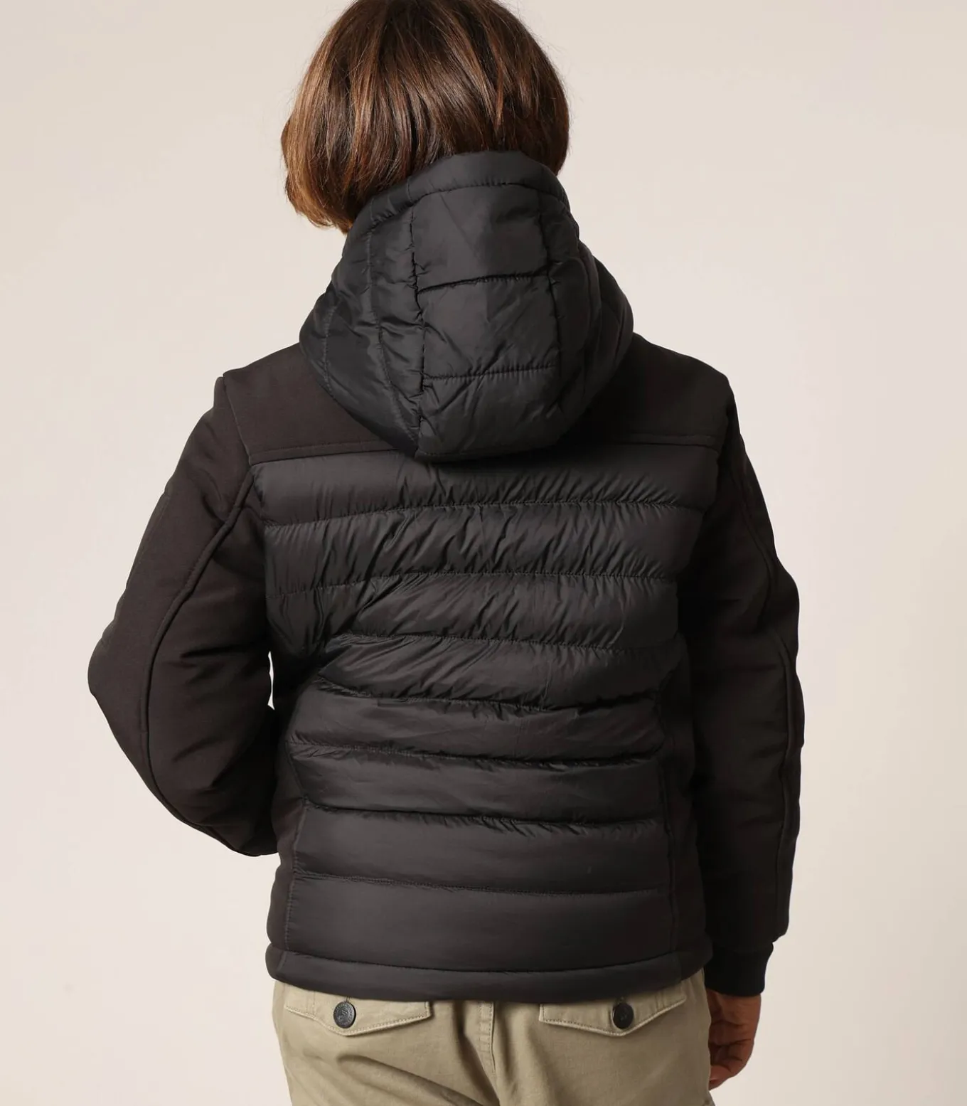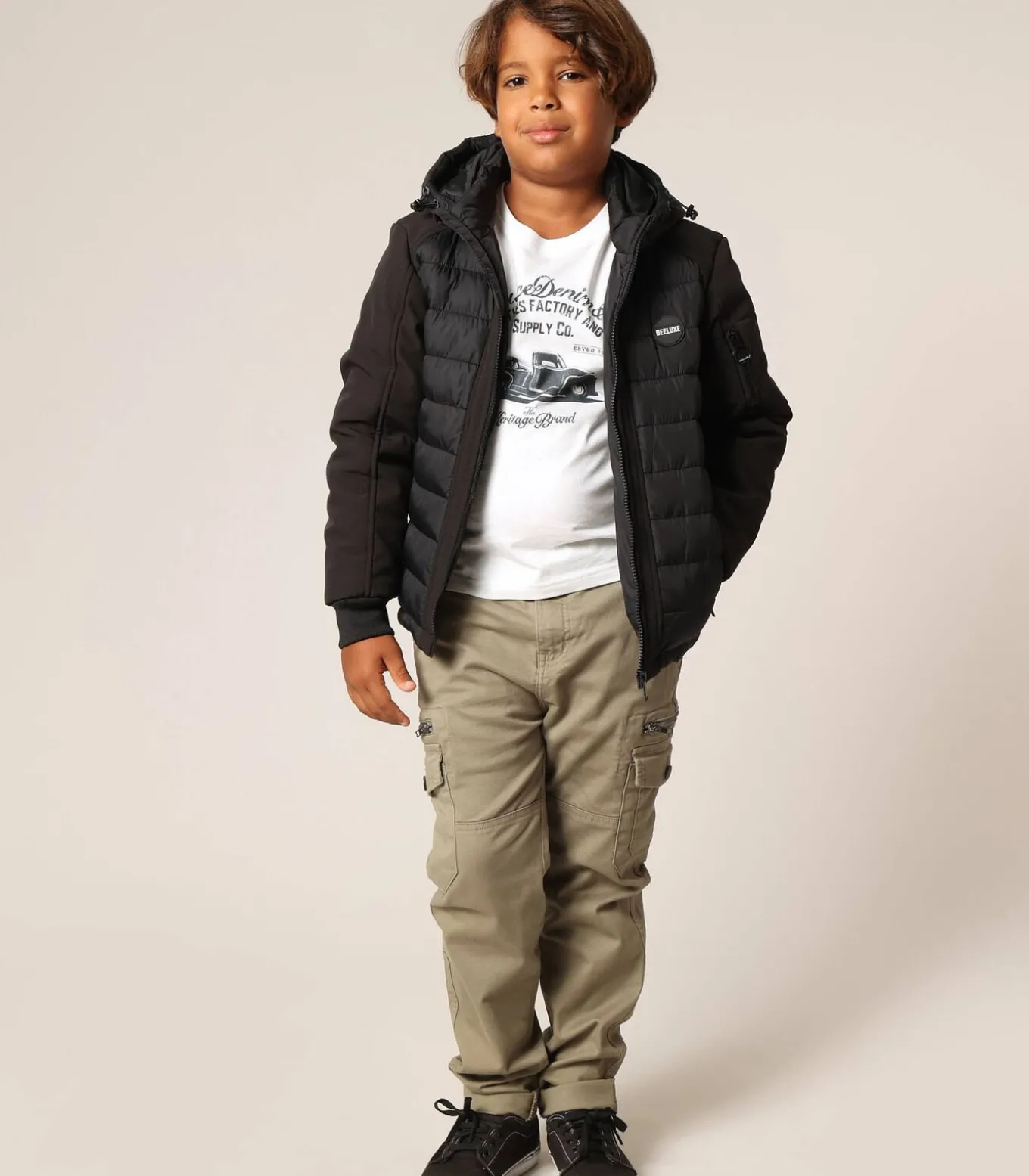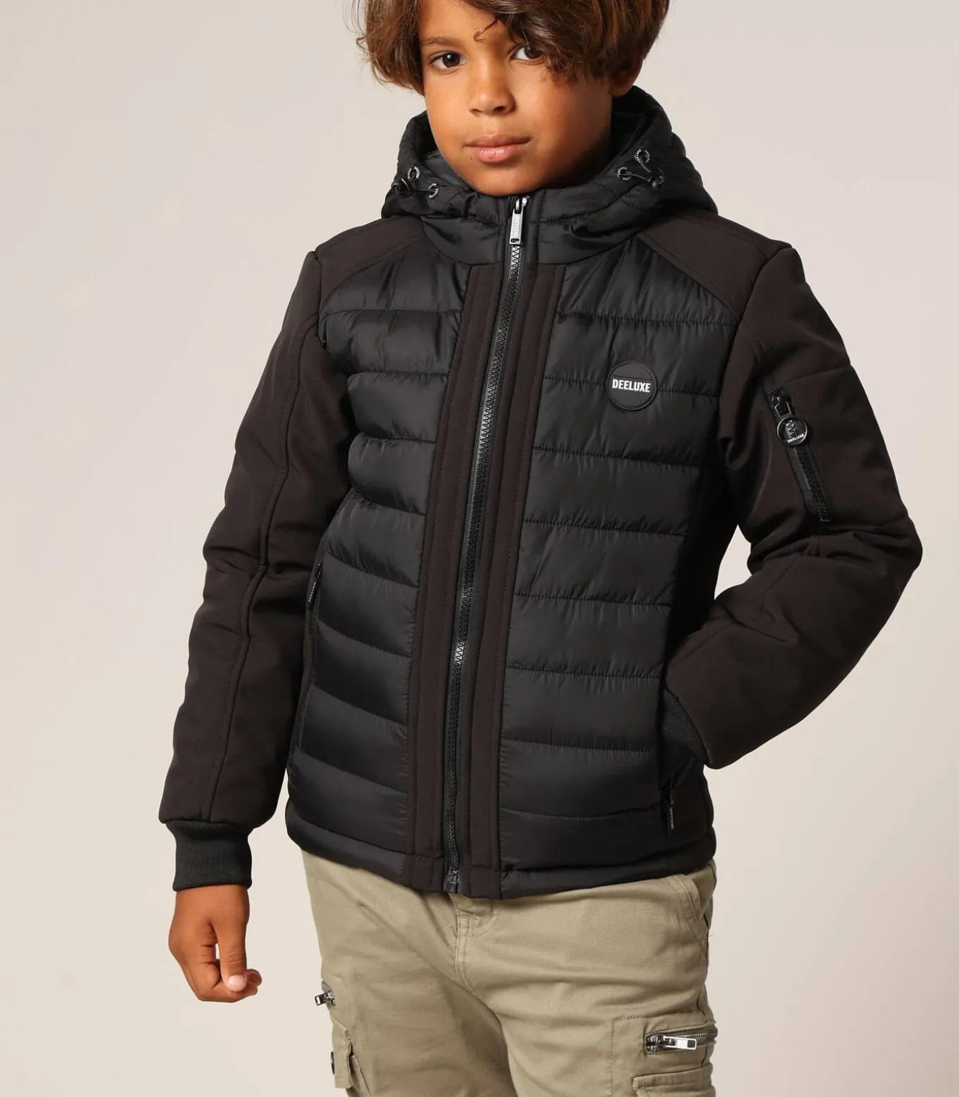 SECTOR jongensjas met een sportieve en urban stijl. Deze donsjas met capuchon is voorzien van horizontale stiksels op de romp en rug, terwijl de contrasterende mouwen een moderne touch geven. Hij heeft een ritssluiting aan de voorkant, een comfortabele opstaande kraag en een verstelbare capuchon met elastische trekkoorden. Er zijn twee zakken met rits aan de zijkant en een zak op de linkermouw met een merksluiting. Een ronde DEELUXE–badge is op de borst bevestigd, wat de streetwear–spirit van het model versterkt. Een functioneel en trendy kledingstuk, ideaal om de kou op een lichte manier te trotseren.