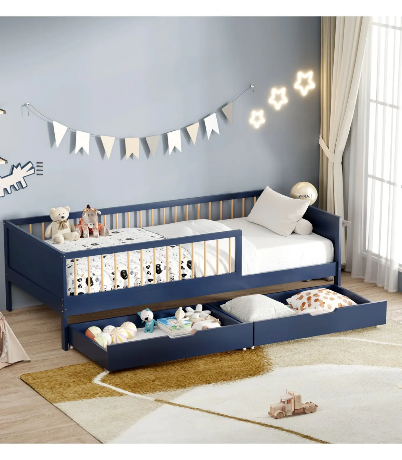 Deze twee lades zijn de ideale oplossing om de slaapkamers van jonge kinderen opgeruimd te houden en toch genoeg ruimte over te laten om te spelen. Deze opbergladen zijn geschikt voor een standaardbed van 190 x 90 cm en glijden netjes onder het bed met behulp van de kleine wieltjes. Je kunt ze gebruiken om lakens, dekens, sierkussens, de kleren van je kind, speelgoed en nog veel meer in op te bergen. Op deze manier heb je een opgeruimde kamer en hoef je geen extra opbergmeubel aan de kamer toe te voegen om ruimte te besparen. Deze twee lades zijn gemaakt van grenenhout, zijn stevig en passen bij het ledikant.