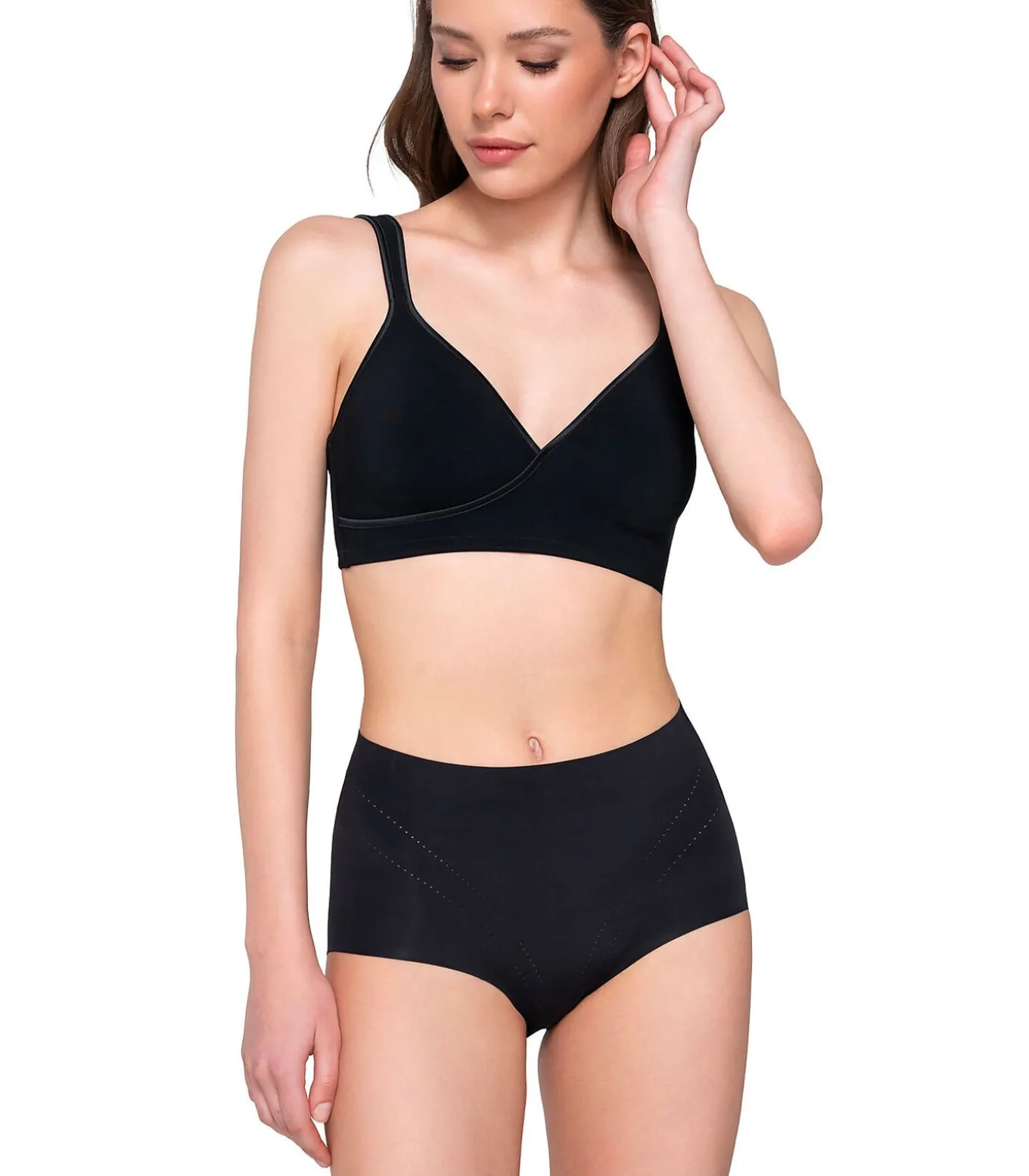 Naadloze, high–waist shaping boxershort voor een onzichtbaar effect onder kleding. Naadloos, hitteverzegeld elastiek voor een gelijkmatige, niet–vervormende look. Kleine gaatjes aan de zijkanten om het lichaam te laten ademen en je de hele dag comfortabel te houden. Katoenen kruisje voor gegarandeerd intiem comfort. Ontdek de nieuwe Sculpt lingerie die de manier waarop je je voelt zal veranderen! Gemaakt om onmiddellijk glad te strijken en ondersteuning te bieden, het tekent de lijnen van je lichaam op natuurlijke wijze voor een gladstrijkend effect, zelfs onder de strakste kleding. Of je het nu onder je dagelijkse outfit draagt of voor een speciale gelegenheid, je zult je comfortabel en zelfverzekerd voelen.[Boxer wordt apart verkocht. Bh, sieraden en andere accessoires die het model op de foto’s draagt, zijn niet inbegrepen].