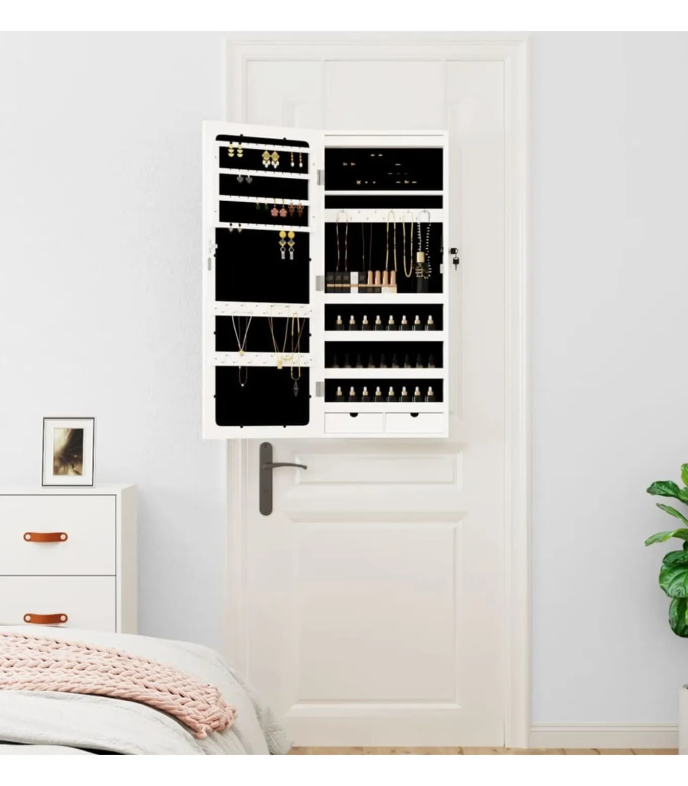 Ruimtebesparend ontwerp: hang de sieradenspiegel met de inbegrepen haken over de deur heen of bevestig hem aan de muur om vloerruimte te besparen.