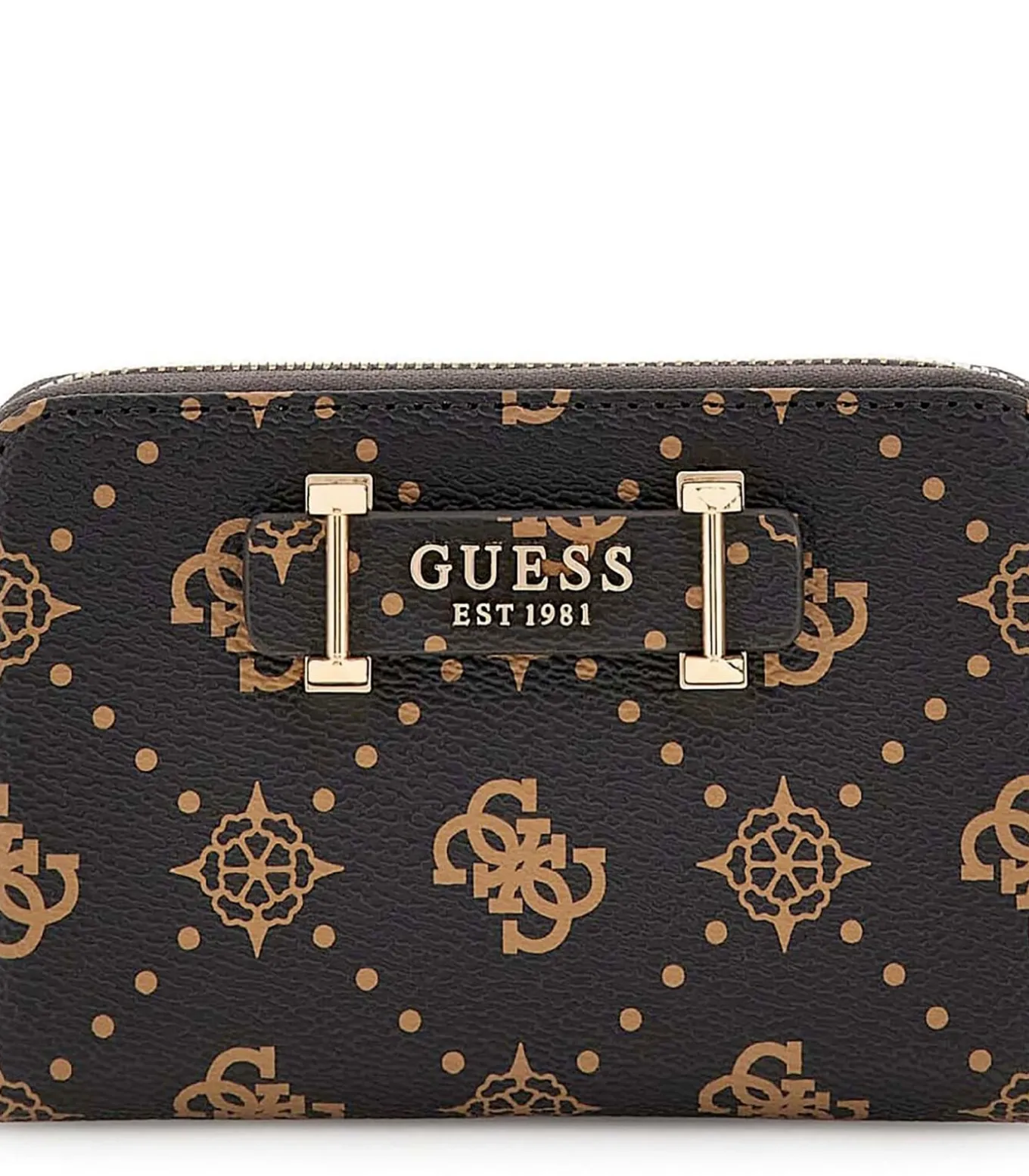 Kleur: Espresso–logo Samenstelling: 100% polyurethaan Sluiting: rits Binnenkant: hoofdvak met intern ritsvak voor munten en creditcardvakken Afmetingen: 14 x 9 x 3 cm Details: 4G–print en pioenrooslogo, lichtgouden hardware, logo–opschrift met metalen detail op de voorkant Gebruik: perfect voor het elegant opbergen van pasjes en munten, wat een verfijnde touch toevoegt aan uw dagelijkse look