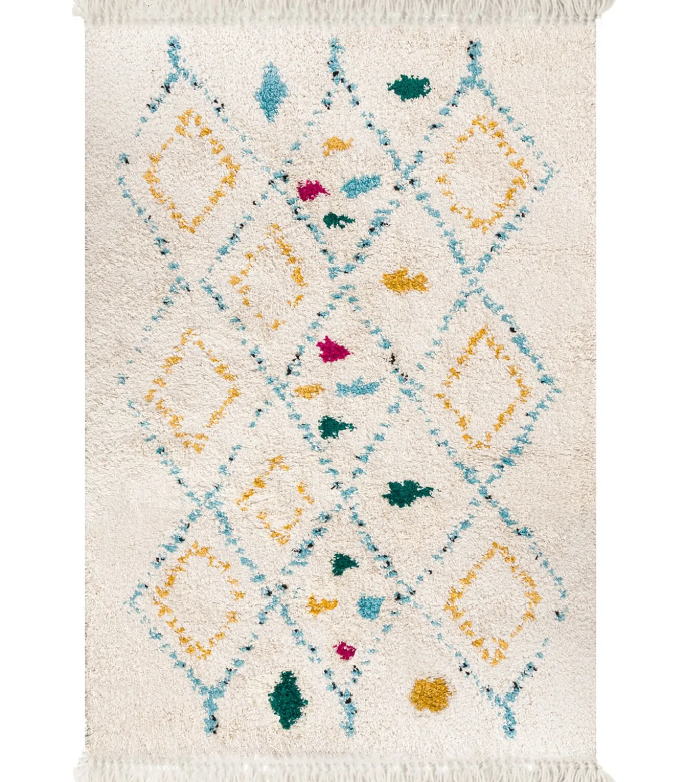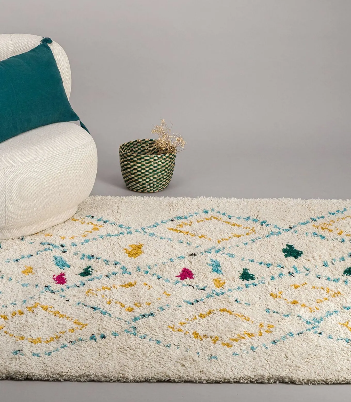 Een uniek tribal–geïnspireerd designtapijt met een trendy kleurenpalet dat de kinderkamer zal opfleuren. AFK Living vloerkleden gemaakt van polypropyleen – ook wel synthetische wol genoemd – hebben een zeer solide en robuuste afwerking. Zelfs bij intensief gebruik behoudt het oppervlak van dit vloerkleed zijn design, kleuren en hetzelfde zachte gevoel. Gemakkelijk schoon te maken, waterafstotend, antistatisch en antibacterieel, het is een ideale vezel voor tapijten. Dit vloerkleed is Oeko–Tex Standard 100 gecertificeerd en het bijbehorende ‘Confiance Textile’–label staat synoniem voor verantwoorde textielproductie. Het garandeert ook dat de vloerkleden vrij zijn van alle schadelijke producten Gemakkelijk te onderhouden, dit kindertapijt is zeer comfortabel en natuurlijk geluiddempend. < / Geweven vloerkleed. Anti–mijten. Het gebruik van synthetische wol voor een kindervloerkleed is niet triviaal. Tegenwoordig maken weeftechnieken het mogelijk om zachte, pluche en robuuste tapijten te creëren. Bovendien is het gemakkelijk te onderhouden en verkleurt het niet door blootstelling aan licht. Verzorgingstips: – Stofzuigen regelmatig zonder wrijven om stof en andere droge deeltjes van het tapijt te verwijderen – Gebruik geen harde borstel – Trek niet aan overtollige draad, maar knip deze af met een schaar – Behandel de vlekken met een licht vochtige doek of spons met water en een beetje neutrale zeep. Materiaal: 100% polypropyleen