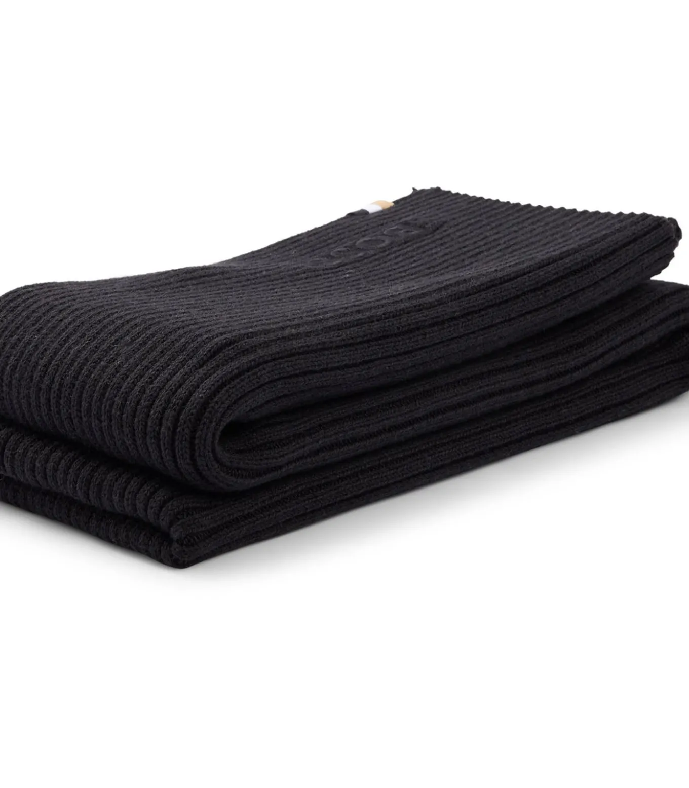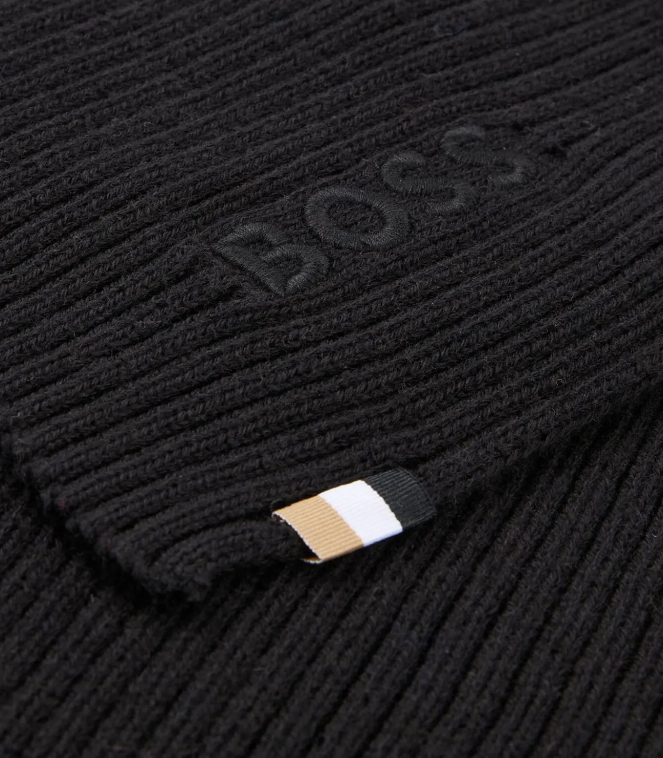 Klassieke gebreide sjaal voor heren van BOSS. Aangenaam warme ribbelsteek van katoen met wol. Kenmerkend streepjeslabel en geborduurd logo. One size.