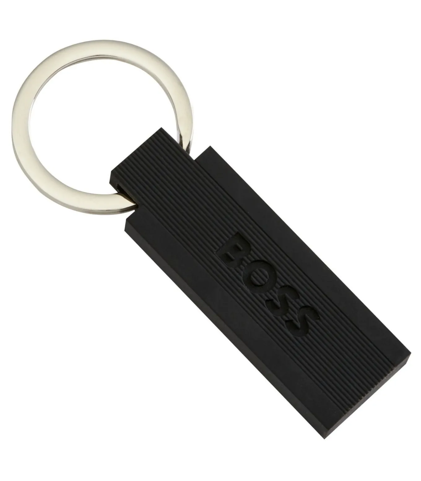 De Edge Iconic sleutelhanger is een heruitgave van een van onze best verkopende artikelen. De siliconen sleutelhanger met chromen accenten is eenvoudig, strak en ingetogen met een subtiel logo. Verkrijgbaar in de iconische kleuren van BOSS: zwart, wit en camel. Dimensions: 20 x 8 x 58/RING:25 mm, Material: 60% Silicone,40% Stainless steel