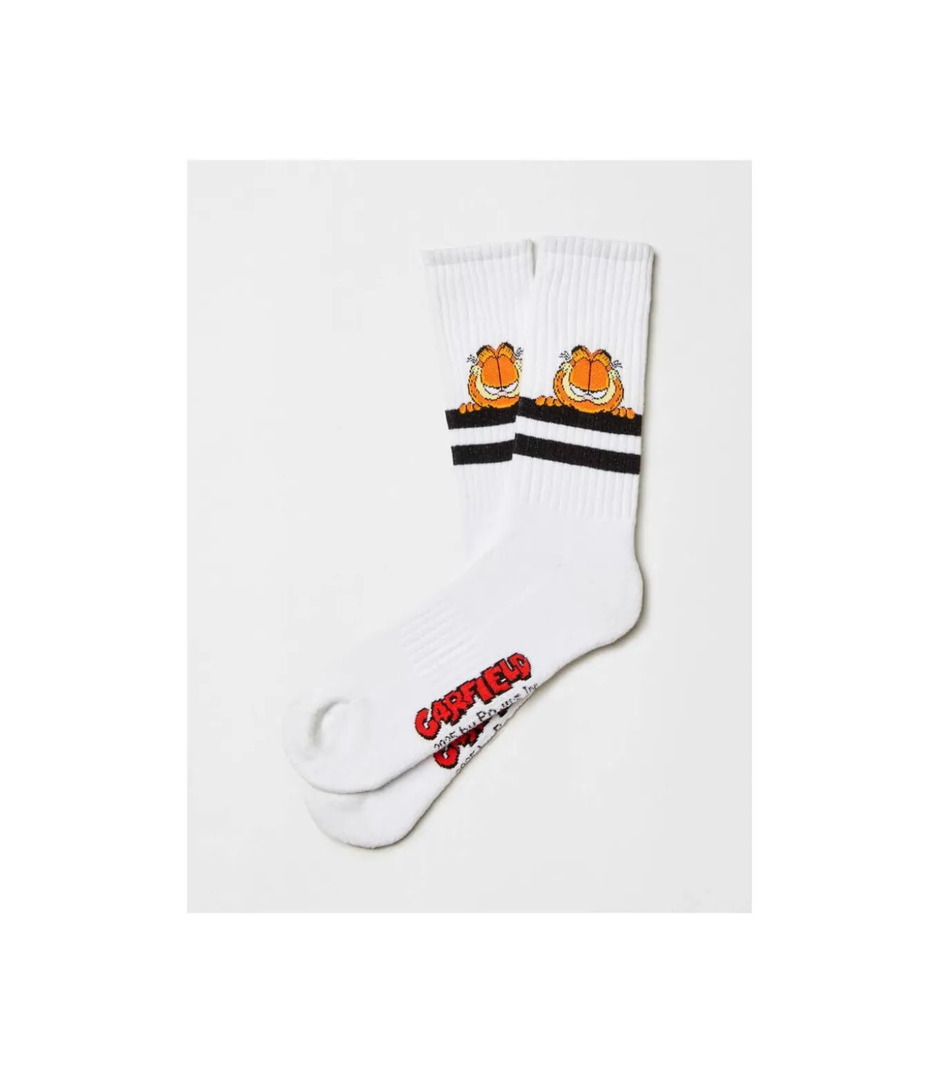 Witte GARFIELD–sokken in sportieve stijl, gemaakt van 100% biologisch katoen. Halve lengte. Ideaal voor streetwear–stijl outfits.