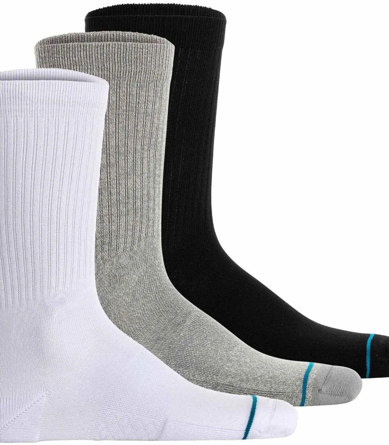 STANCE unisex sokken in een praktisch 3–pack. Lifestyle crew sokken met logo, medium demping en naadloos teengedeelte.