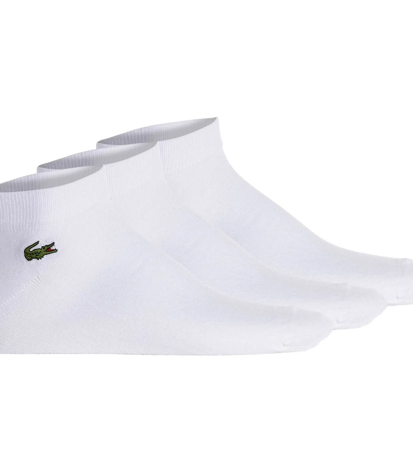Sneakersokken voor dames en heren van het merk LACOSTE in een praktisch 3–pack. Effen sokken met een klein krokodillenlabel op de zijkant.