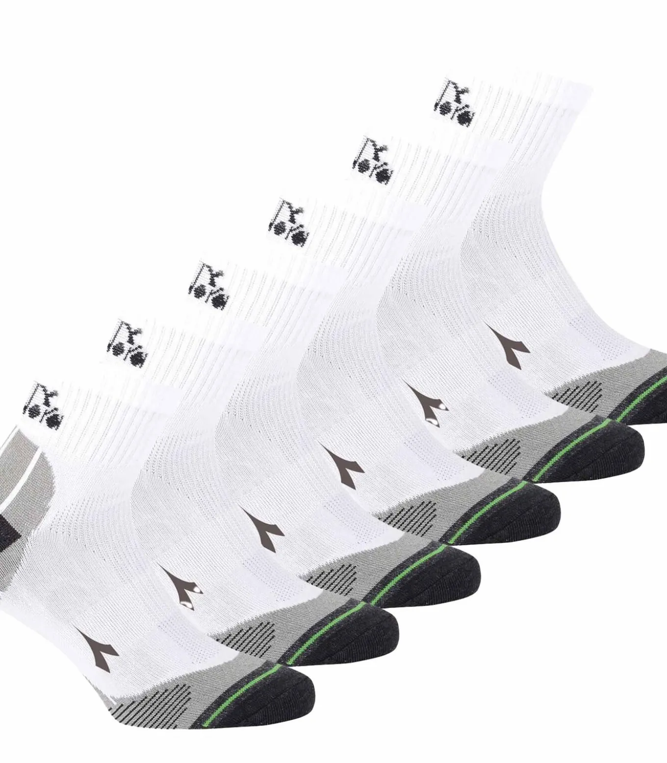 Unisex sportsokken voor dames en heren van het merk Diadora. In een praktische verpakking van 6 stuks. Effen model met patroon op de hiel en de teen. Aangenaam draagcomfort.