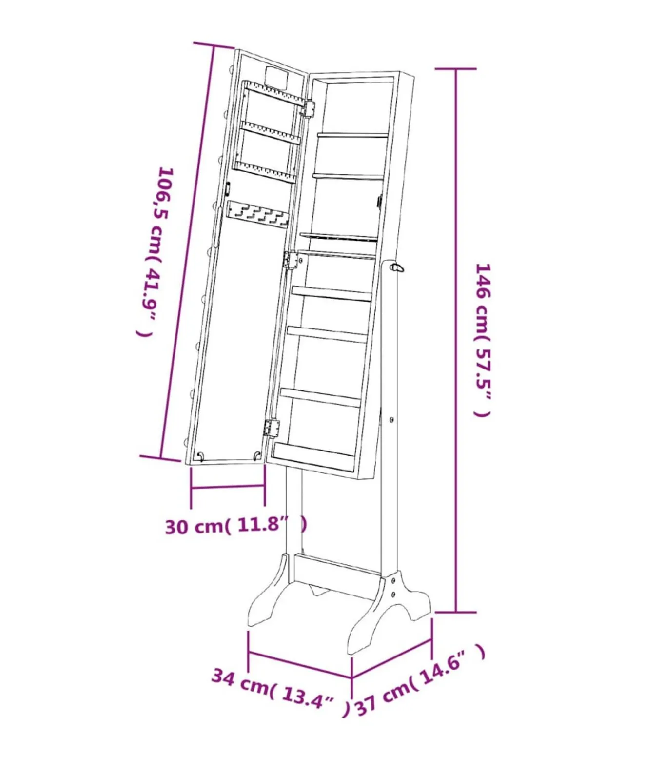 Totale afmetingen: 34 x 37 x 146 cm (B x D x H)