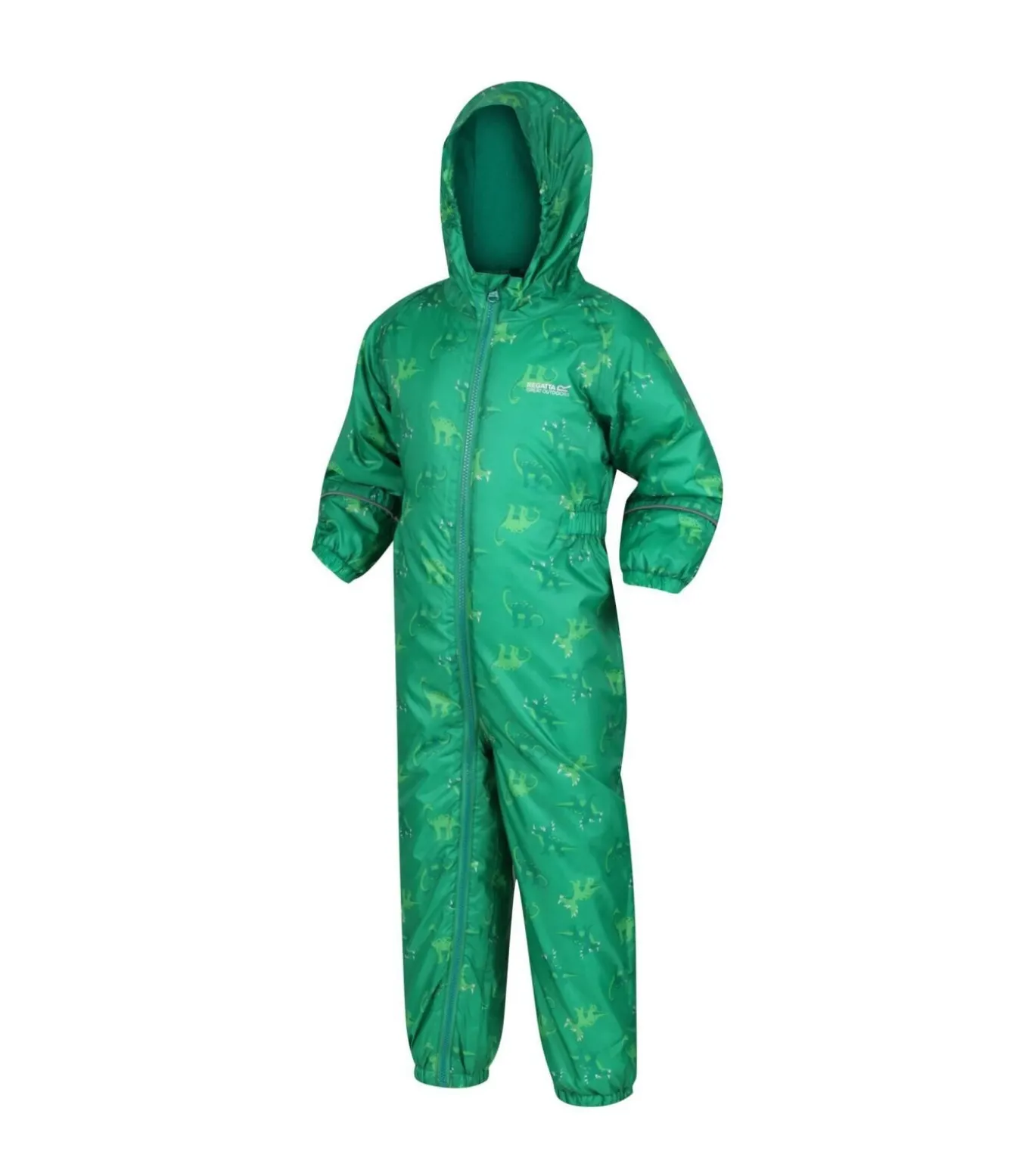 Dit kinderregenpak met capuchon van Regatta heeft een lichtgewicht en ademende polyester stofconstructie die waterdichte en duurzame bescherming biedt tegen de elementen. De naden van het regenpak zijn getapet om de waterdichte integriteit te behouden. De Thermo–Guard technologie zorgt voor isolatie. De fleece voering op het lichaam en de capuchon zorgt voor extra warmte. De capuchon is direct aan het regenpak bevestigd. De taille en manchetten zijn elastisch voor een comfortabele pasvorm. Reflecterende afwerking verhoogt de zichtbaarheid. Dit regenpak is geschikt voor buitengebruik op koudere dagen en is gemaakt van duurzaam polyester.