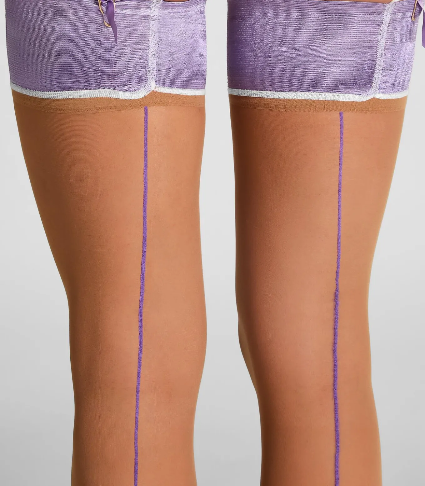 Trek de aandacht met onze 15 Denier Stay–Up, die vintage en comfort combineert. Het elegante naaddetail aan de achterkant zorgt voor een klassieke verlenging van de benen, terwijl de elastische tailleband en de siliconen gripbanden zorgen voor een stevige pasvorm, zonder bretels.