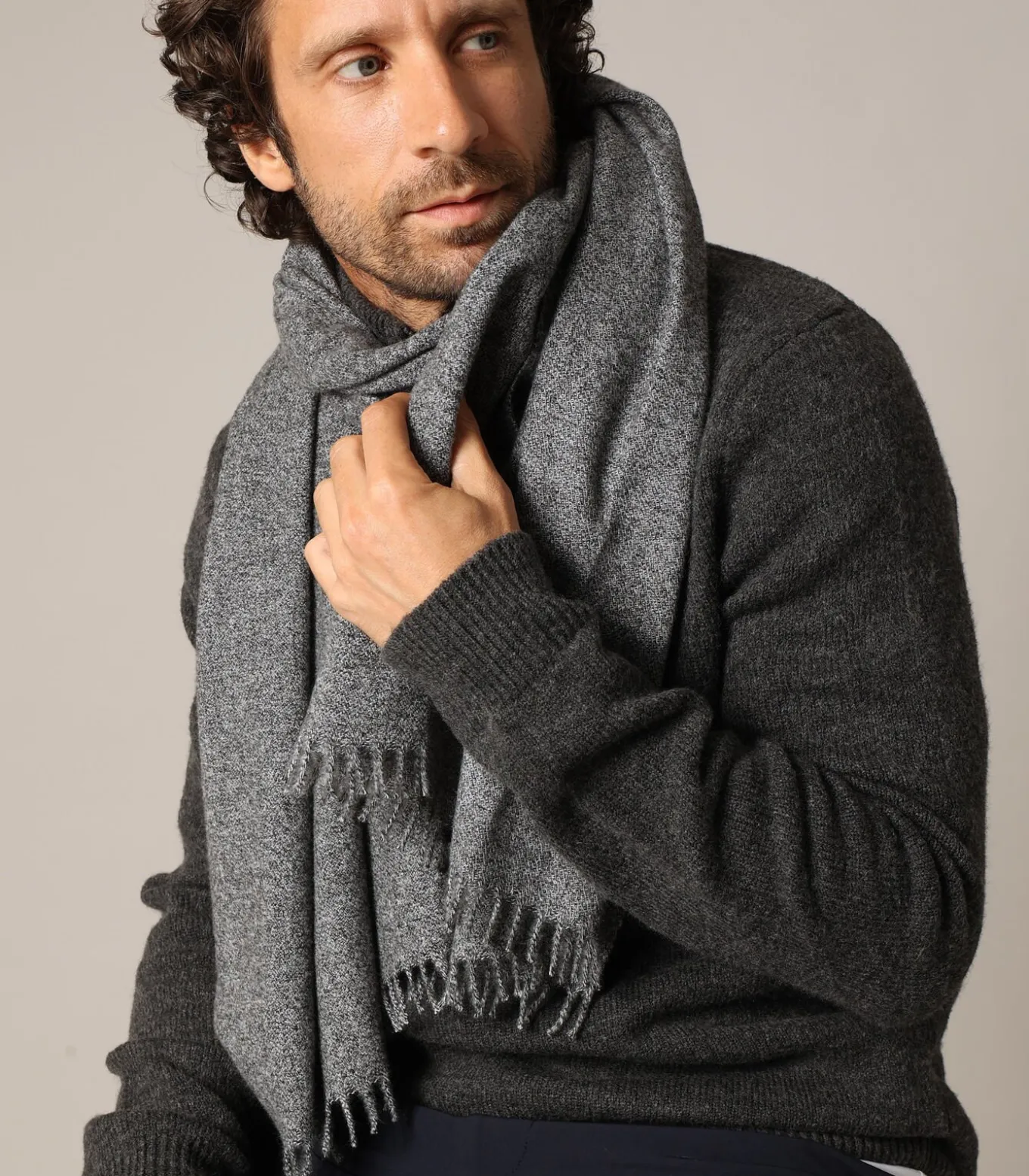 De STEW–sjaal voor heren maakt indruk met zijn strakke stijl en prachtige, subtiel gemêleerde gebreide textuur. Met zijn royale rechthoekige vorm en franjes aan de uiteinden voegt hij een eenvoudige, elegante touch toe aan elke winterlook. Zacht en comfortabel, kan hij zowel binnen als buiten gedragen worden, om de nek gewikkeld of over de schouders gedrapeerd voor een relaxte, verfijnde look.