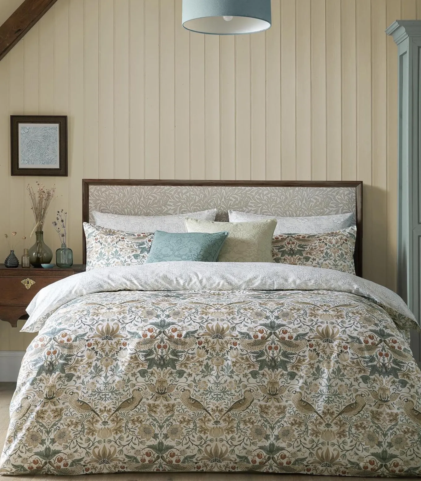 Het dekbedovertrek van William Morris at Home is gemaakt van luxueus 100% katoen–satijn met een draadtelling van 220, voelt het zijdezacht aan tegen je huid en biedt het optimaal slaapcomfort. De stof is ademend, duurzaam en onderhoud is eenvoudig.wasbaar op 40C, bij voorkeur aan de lijn drogen of op lage temperatuur in de droger.Laat je slaapkamer tot leven komen met dit stijlvolle en rustgevende design dag in, dag uit.