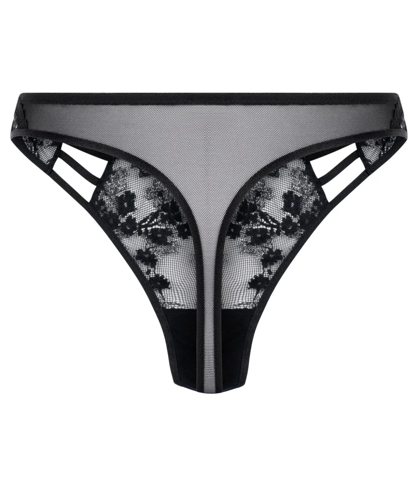 Geef je zelfvertrouwen een boost met deze kanten string, waar elegantie en stoer samenkomen. Hij is gemaakt van zacht, rekbaar kant, met gedetailleerde uitsparingen aan de zijkanten voor een gedurfde maar toch verfijnde look. Combineer hem met je favoriete bh voor een complete look.