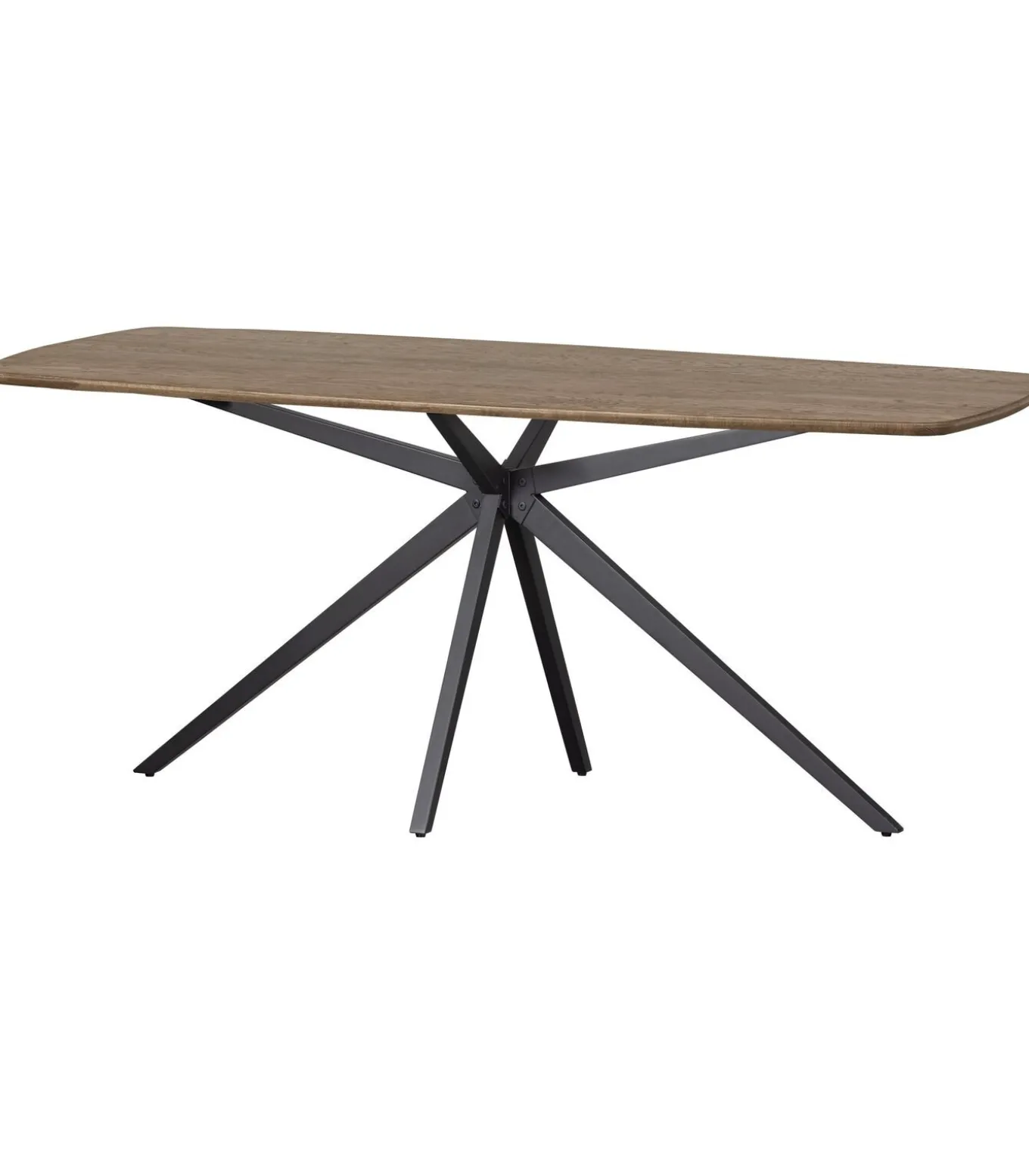–Holland XL poot met verjongd eikenhouten tafelblad (FSC mix gecertificeerd)–Creëer jouw ideale eethoek–Tafelblad voorzien van unieke kantafwerking–H 76 cm X B 219 cm x D 99 cmCreëer jouw ideale eethoek met de veelzijdige Tablo–serie van het Nederlandse interieurmerk WOOOD. Met talloze combinatiemogelijkheden en verschillende afmetingen stel je moeiteloos een eethoek samen die perfect aansluit bij jouw wensen. Kies bijvoorbeeld voor dit royale Deens ovale tafelblad in combinatie met de Holland kruispoot XL voor een grove, stevige en moderne uitstraling in jouw interieur. Het tafelblad is voorzien van een subtiele, afgeronde kantafwerking, wat zorgt voor een verfijnde en elegante uitstraling. Het tafelblad is gemaakt van verjongd eikenhout.KenmerkenEikenhout wordt gekenmerkt door de duidelijk zichtbare nerftekening. De natuurlijke imperfecties van het eikenhout maken elke tafel uniek. De tafelbladen zijn licht geborsteld waardoor de nerftekeningen worden geaccentueerd en de beits– en lak kleuren nog mooier tot uiting komen. Het eikenhout in onze collecties is FSC mix gecertificeerd.De metalen met poedercoating zorgen voor een luxueuze uitstraling en zijn levenslang beschermt. Een poedercoating is een lak welke met behulp van hoge temperaturen aan het metaal gehecht wordt. Een poedercoating zorgt voor een volledige kleurdekking en kent een matte of (licht)glanzende afwerking.Afmetingen–Hoogte: 76 cm–Breedte: 219 cm–Diepte: 99 cm–Gewicht: 59,9 kg–Maximaal draaggewicht: 80 kgOnderhoudBehandeld eikenhout is zeer eenvoudig in het onderhoud. Houd het meubel regelmatig stofvrij met een schone, droge doek. Verwijder vochtige vlekken direct met een licht vochtige doek en neutraal schoonmaakmiddel, laat het hout aan de lucht drogen. Hanteer altijd de basisbescherming voor hout, zoals het gebruik van een onderzetters onder een drinkglas of een hete pan. Raadpleeg bij beschadigingen een gespecialiseerde verfwinkel voor een eventuele herbehandeling van het meubel.Al onze metalen poten uit de collectie zijn grondig behandeld en vragen dus niet om een herbehandeling. Behandeld metaal is eenvoudig schoon te houden met een lichtvochtige doek, het nadrogen van het oppervlak zorgt voor een streeploos resultaat.LeveringHet tafelblad en de tafelpoot worden apart geleverd en zijn eenvoudig te monteren aan de hand van de bijgeleverde montage–instructie. Plaats voor het beschermen van harde vloeren viltglijders aan de onderzijde van de poten.