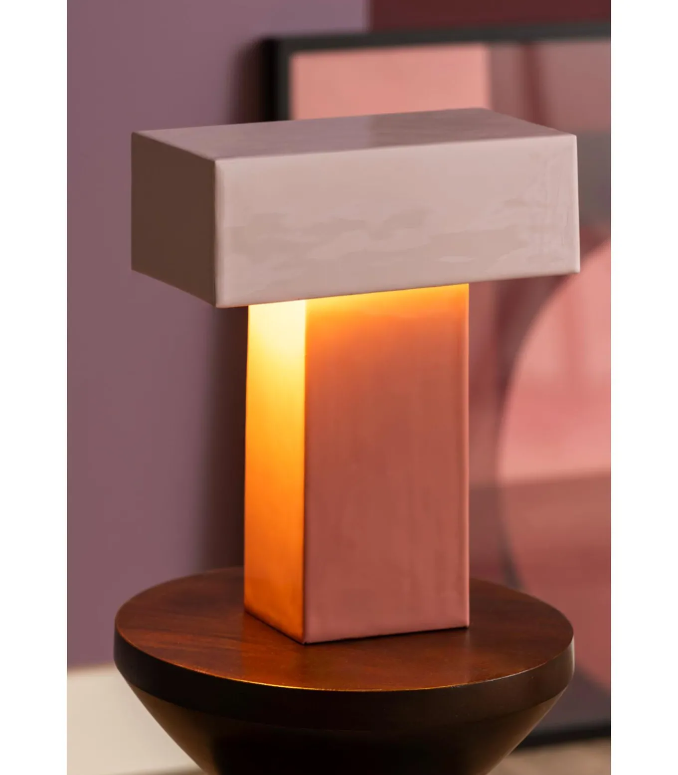 Wie zegt dat een tafellamp rond moet zijn? De Grato Recto van Leitmotiv laat zien dat hoekig ook prachtig werkt. Dit opvallende design combineert twee strakke rechthoeken tot een minimalistisch statementstuk. De tone–in–tone kleuren en glanzende finish geven de lamp een moderne, almost architecturale uitstraling. Een gedurfd accent voor liefhebbers van grafische vormen en design met karakter.