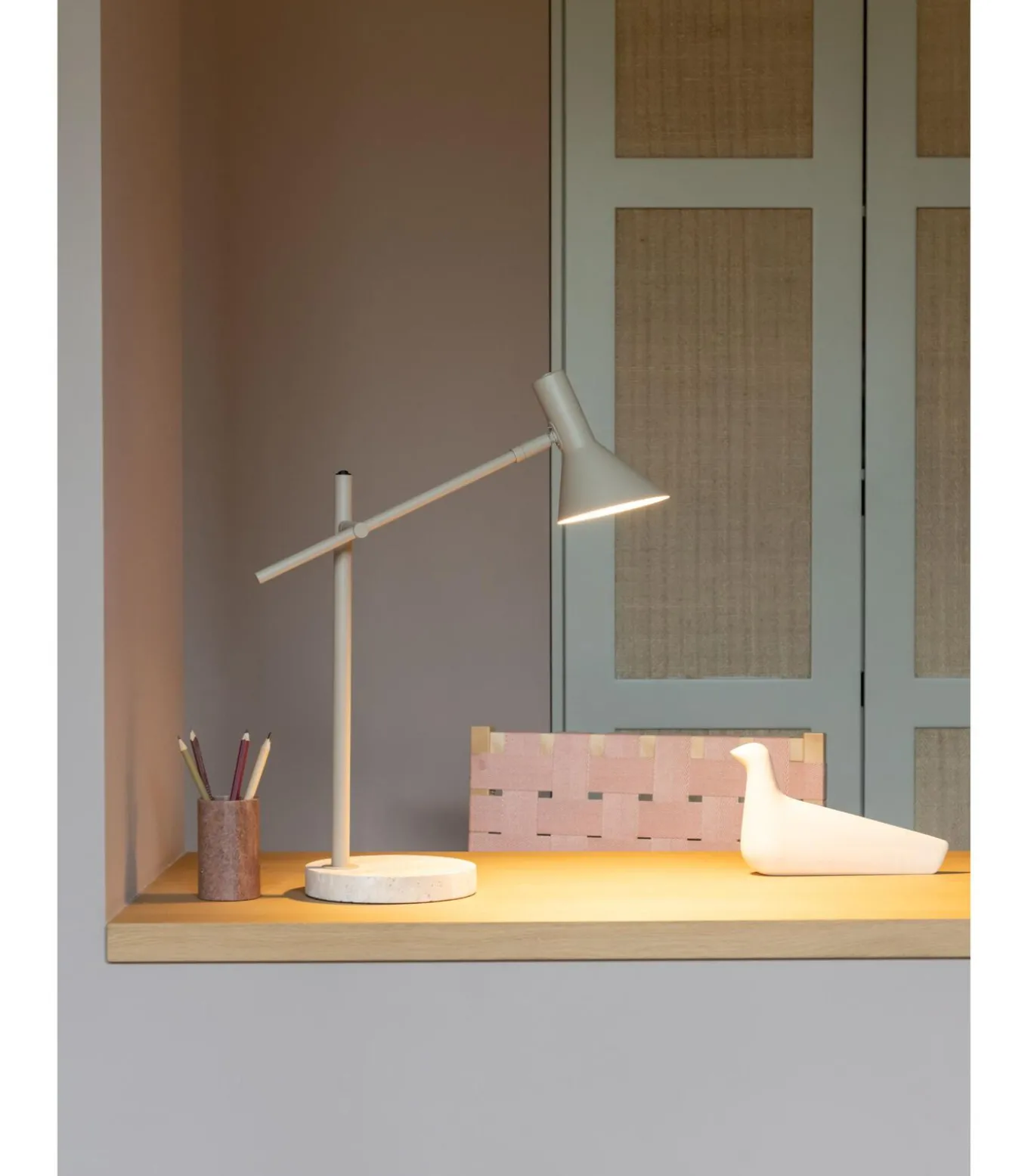 De Izmir tafellamp in een warme zandkleur combineert een elegante travertijnen basis met slimme functionaliteit. Dankzij de verstelbare arm, beweegbare kap en handige schakelaar op de lamp kun je het licht eenvoudig aanpassen, waardoor je altijd de perfecte sfeer creëert. Deze veelzijdige tafellamp voegt stijl en praktische verlichting toe aan elk interieur, van woonkamer tot kantoor of nachtkastje.