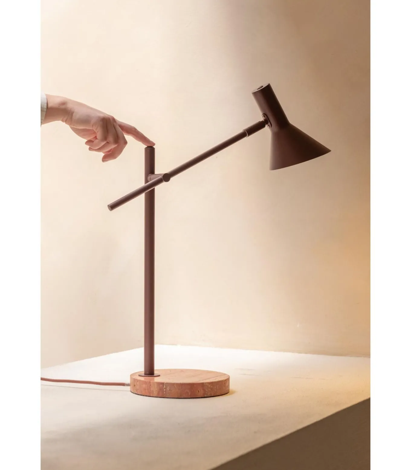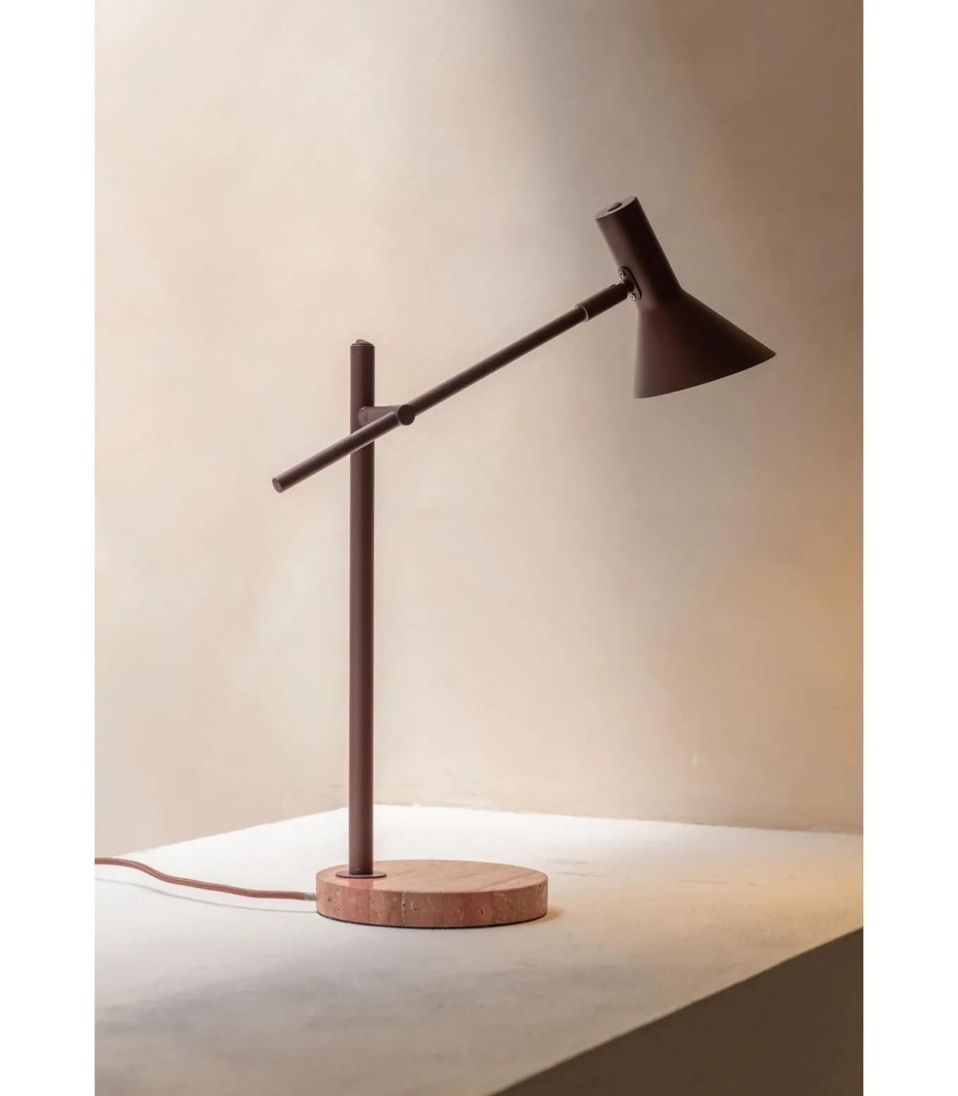 De Izmir tafellamp combineert tijdloze elegantie met slimme functionaliteit. Het travertijnen voetstuk zorgt voor een stijlvolle basis, terwijl de verstelbare arm, beweegbare kap en handige schakelaar op de lamp het mogelijk maken om het licht eenvoudig aan te passen. Creëer moeiteloos gepersonaliseerde verlichting en voeg een verfijnde, sfeervolle touch toe aan je bureau, bijzettafel of nachtkastje.