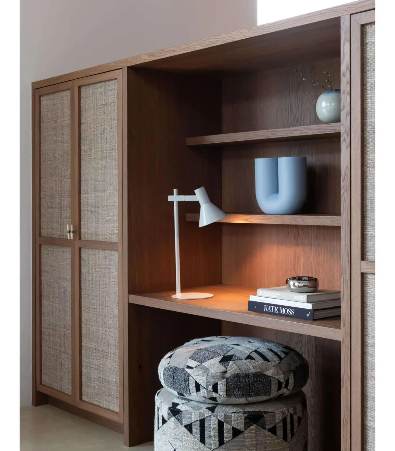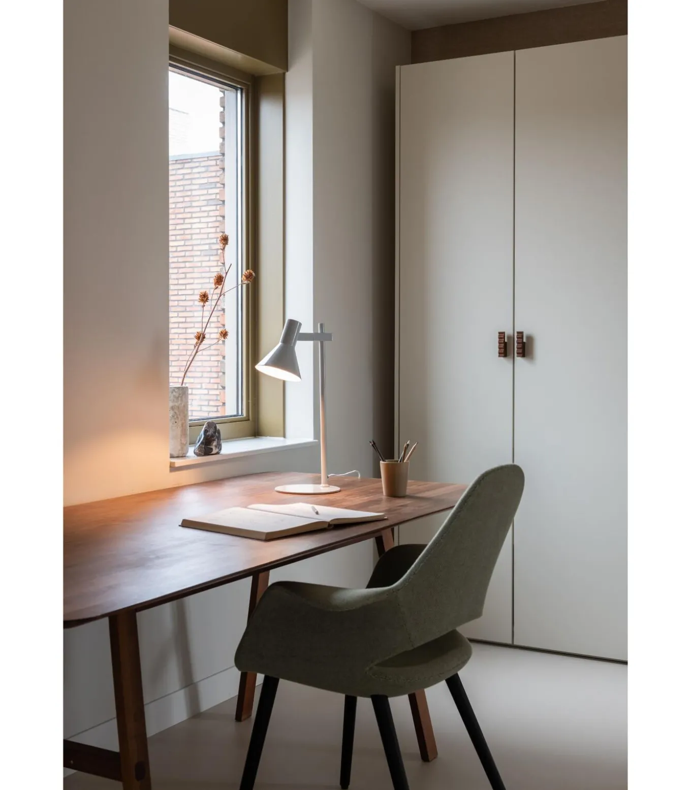 De Stavanger tafellamp in het lichtgrijs combineert een uniek ontwerp met een glanzende afwerking. De verstelbare lampenkap en schakelaar op de kap zorgen voor gerichte en verfijnde verlichting, waardoor de lamp zowel stijlvol als functioneel is.