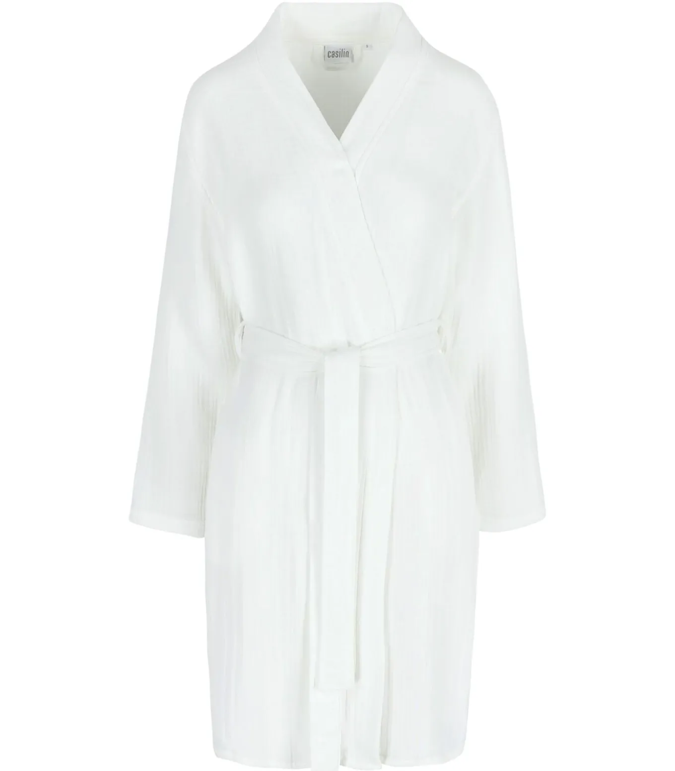 – Droger: de badjas mag in de droger, maar krimpt dan nog 5%. Dit is eigen aan de stof