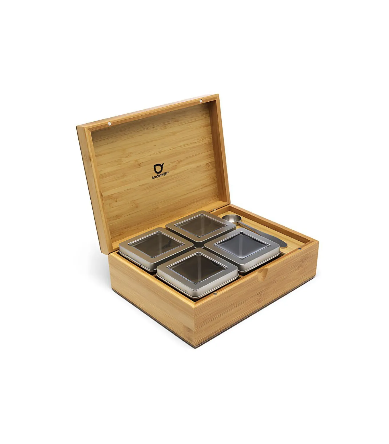 Theedoos Bamboe met 4 blikjes en theemaatlepel