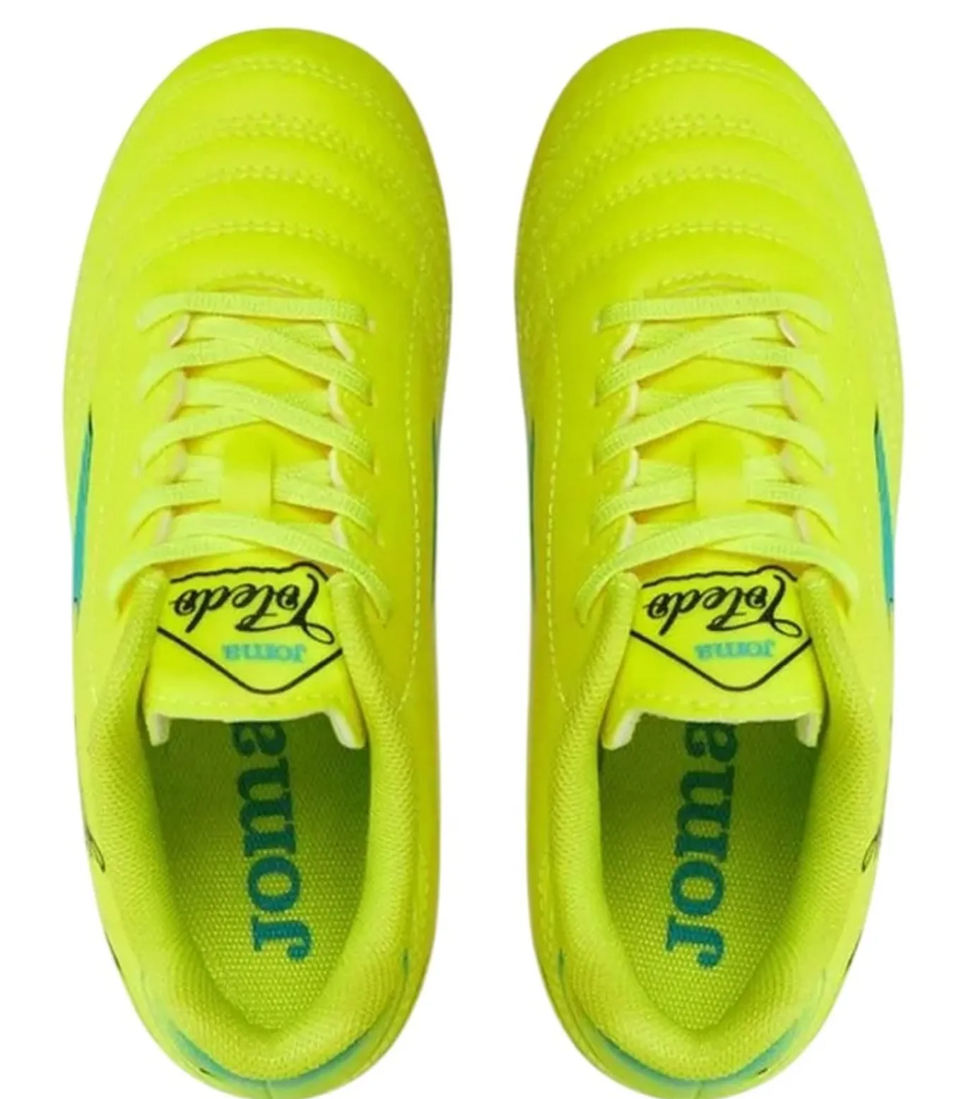 Joma TOLEDO geel voetballozen hebben een duurzaam en flexibel bovenste deel met versterkte voetsol en slijtvaste, grippige rubber uitenzoold. Deze voetballozen hebben 6 oogjes, gewatteerde kraag, gewatteerde tong en versterkte teen met VTS–ventilatie. Het ontwerp is afgebeeld via logo, drukwerk en tekst. Ze zijn geschikt voor gras en hebben een vetersluiting.