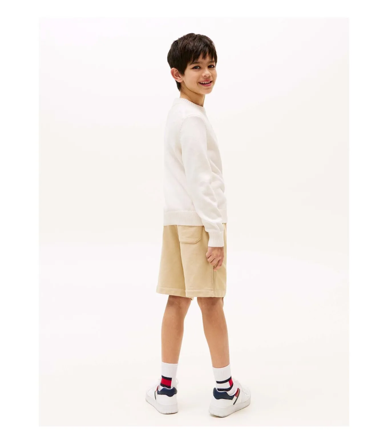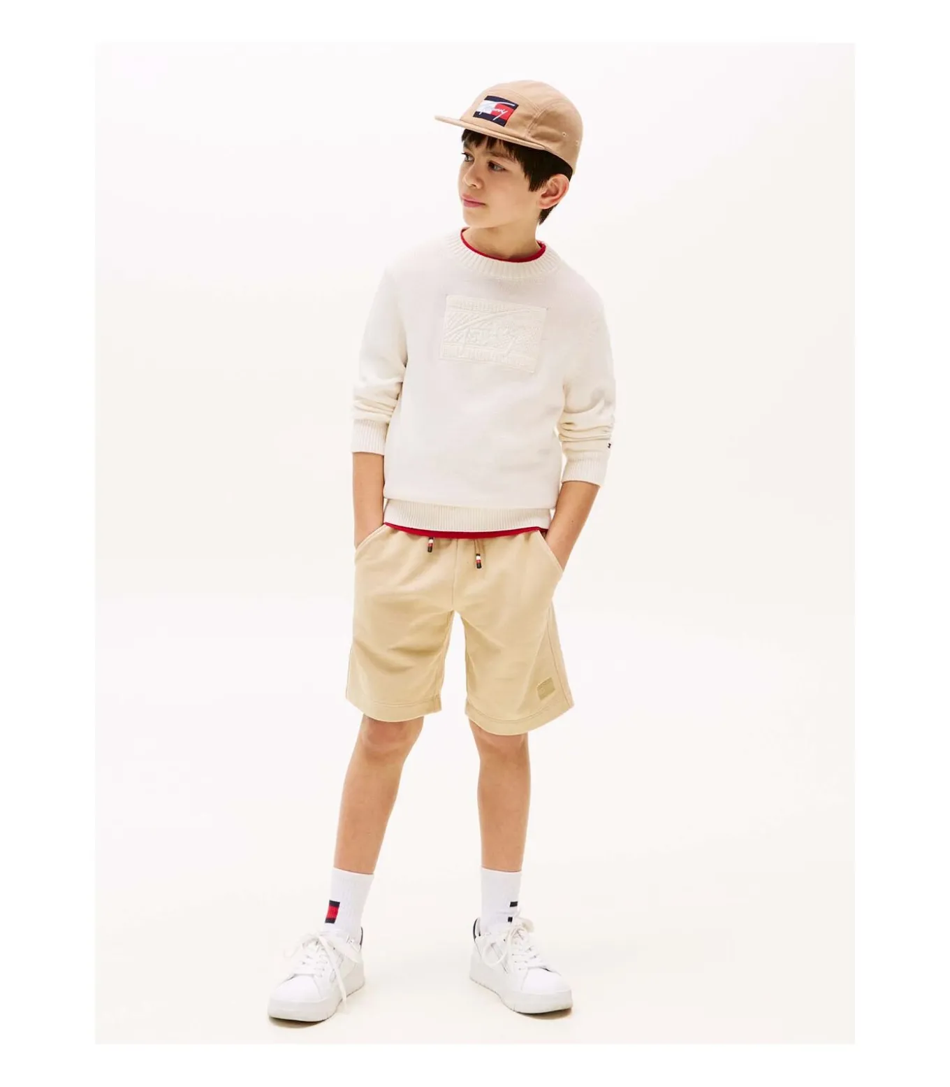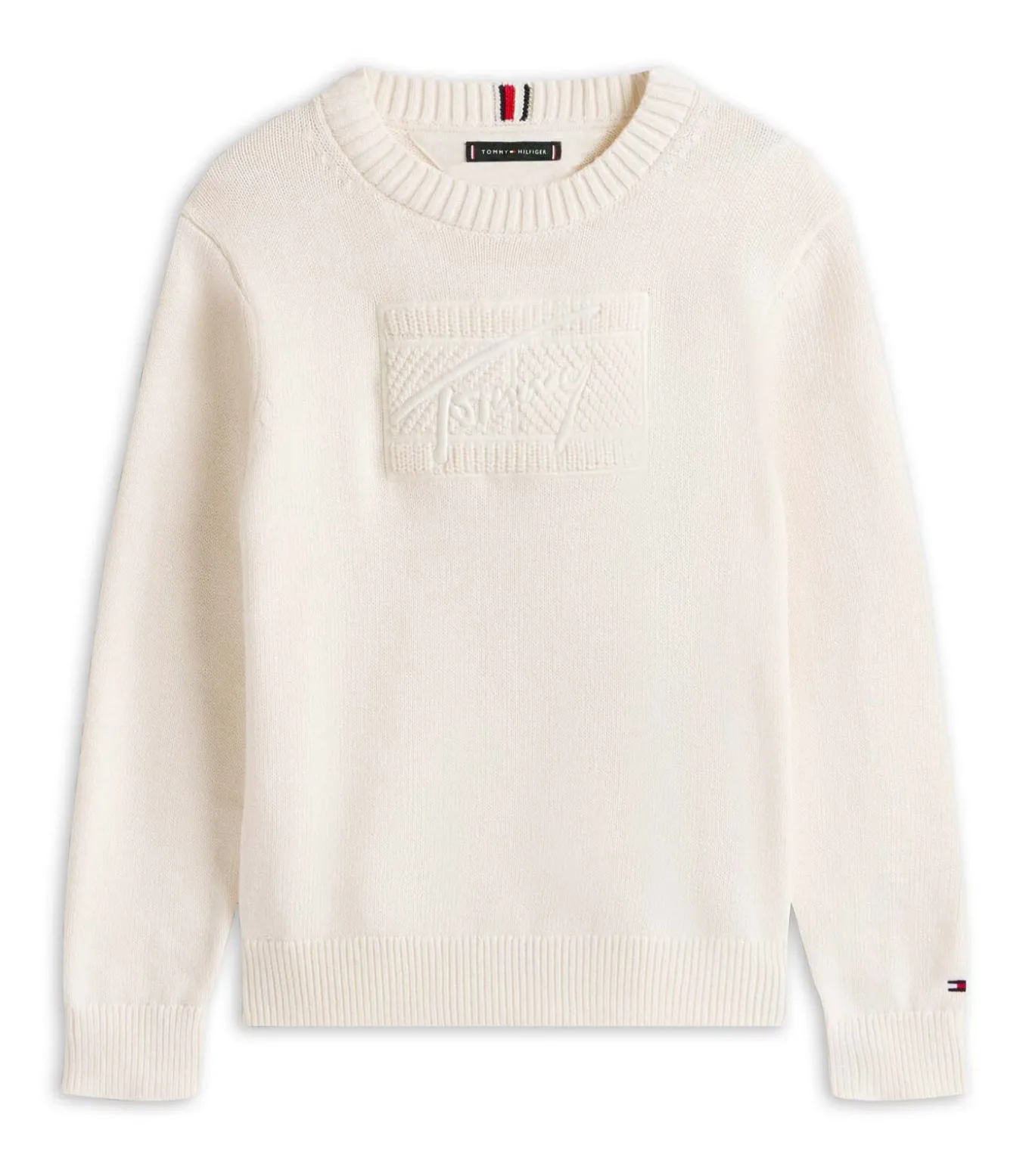 Kleur: Ivoorkleurig Bloemblaadje Samenstelling: 100% Katoen Mouwen: Lang Halslijn: Ronde Hals Pasvorm: Regular Fit Details: Trui van puur katoen, geribbelde kraag/manchetten/onderkant, TH–logo in reliëf op de borst, iconisch lint in de nek, geborduurde vlag op de mouw Gebruik: Perfect voor casual en elegante looks, ideaal voor school en vrije tijd
