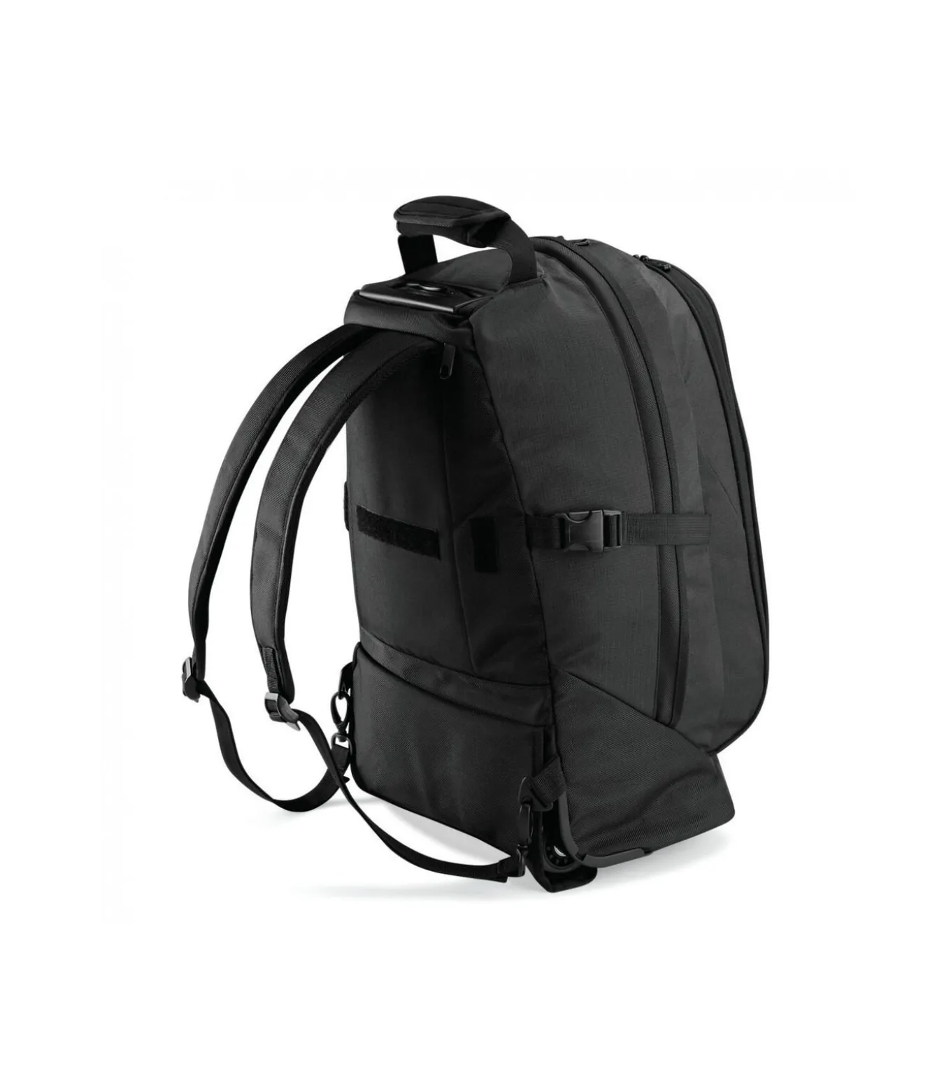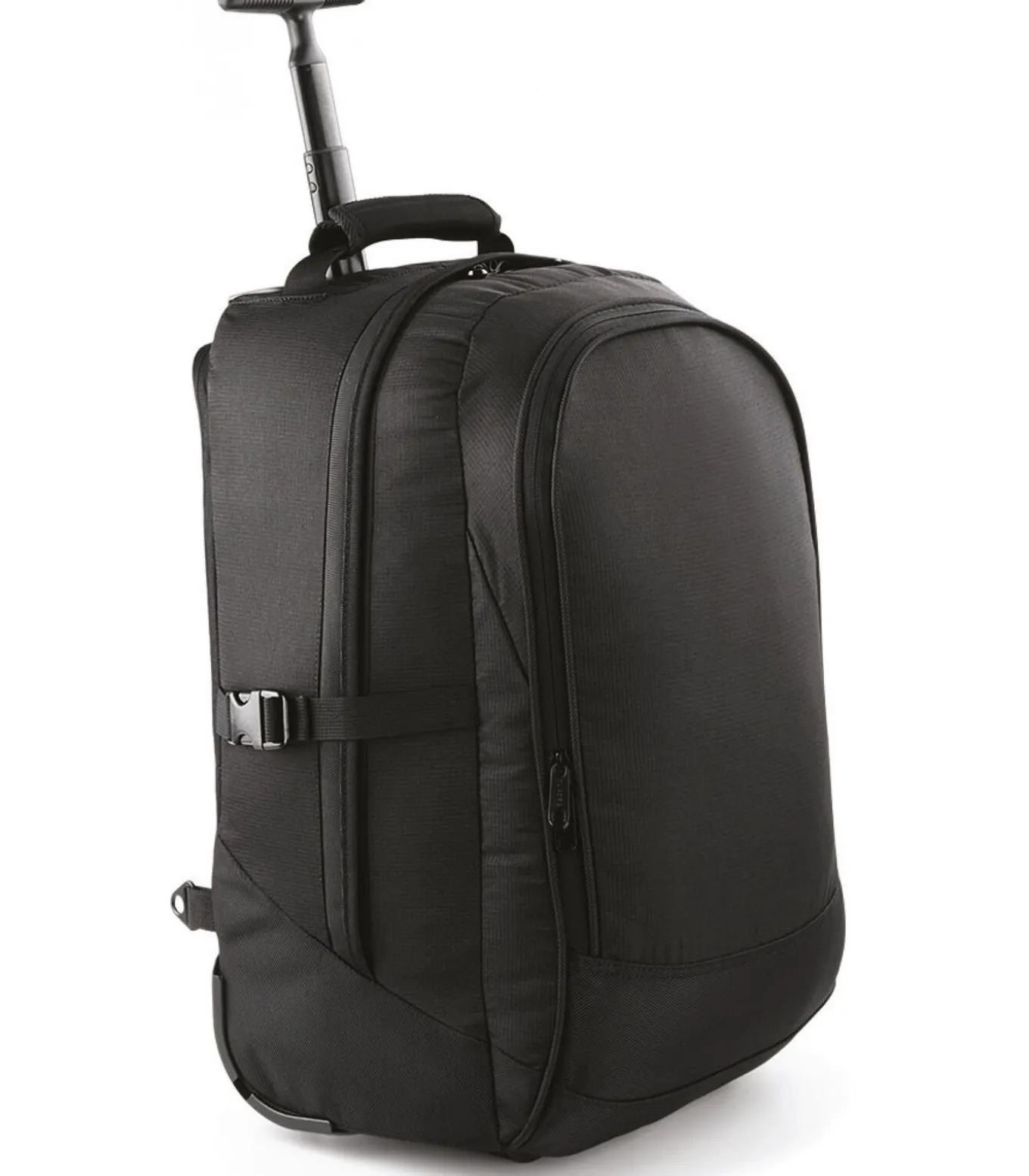600D Micro Rip–stop polyester. Hutgrootte. Vergrendelbare en intrekbare trekgreep met enkele buis. Zware geïntegreerde wielen. Vak met rits om de schouderbanden op te bergen. Ruim hoofdvak. Sectie organisator. Riembevestiging. Naamplaatje. Voorzak met rits. Gevoerd neopreen handvat. Productgewicht: 2.1 Kg.