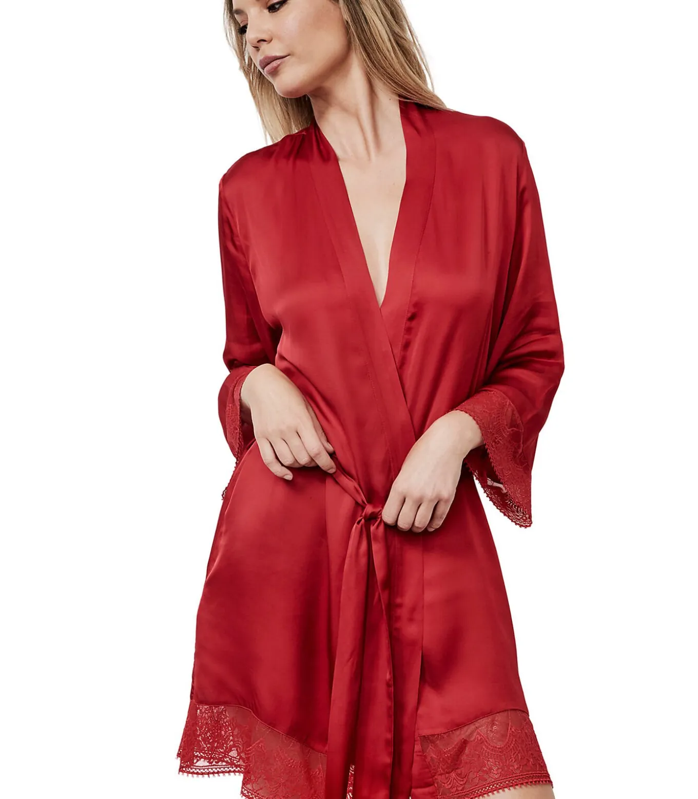 Negligé met lange mouwen voor wie comfort en sensualiteit wil combineren. Gemaakt van een luxueus zachte, lichtgewicht viscosestof, omhult het zachtjes je figuur en geeft het je een gevoel van welzijn terwijl het je rondingen benadrukt. Het verfijnde ontwerp en de kleur maken het de perfecte keuze om thuis in te ontspannen of een vleugje glamour toe te voegen aan je avondjes uit. De mouwboorden en onderkant van de outfit zijn versierd met fijn bloemen– en arabesk kant, afgewerkt met een fijn sierlijk picot–vlechtje voor een delicate touch. De flatterende snit is zorgvuldig ontworpen om bij alle lichaamsvormen te passen, terwijl subtiele details zoals de fijne bies en verstelbare tailleband een vleugje verfijning toevoegen. Of je het nu alleen draagt of over je favoriete nachtpon of lingerie, het is het toppunt van chic en sensualiteit. Het is ideaal om een romantische sfeer te creëren of gewoon om je mooi en zelfverzekerd te voelen.