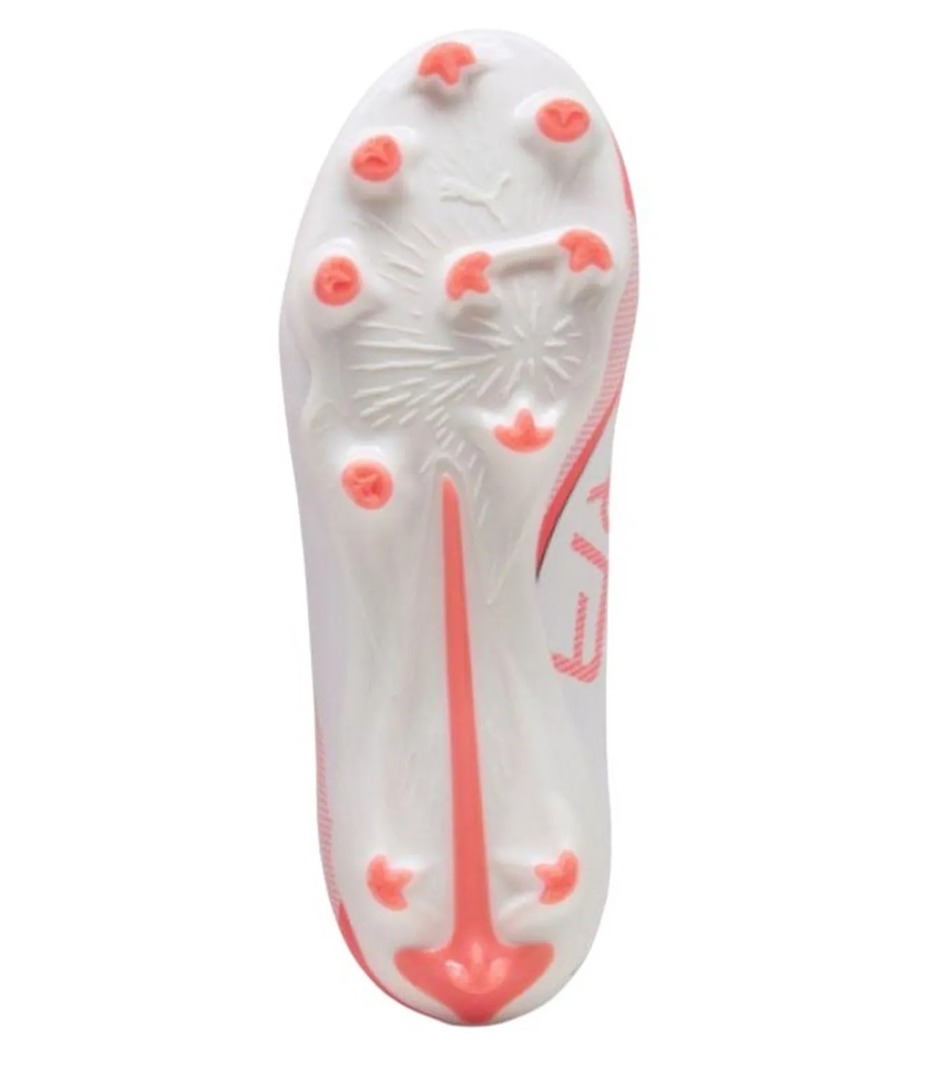 Puma ULTRA 5 MATCH–witte voetbalboots hebben een synthetische bovenlaag en een GripControl–laagbeslag voor optimale grip en stabiliteit op het veld. Deze lichte, vlakke voetbalboots hebben ook een TPU Speedplate–uitsteek en Traction Grip–uitsteek aan de buitenzool om meer traction te bieden. Het ontwerp is rijkelijk versierd met contrastdetails, logos, afdrukken en tekst. Deze voetbalboots hebben een ronde teenstijl en kunnen makkelijk worden vastgemaakt via een pull–on systeem.