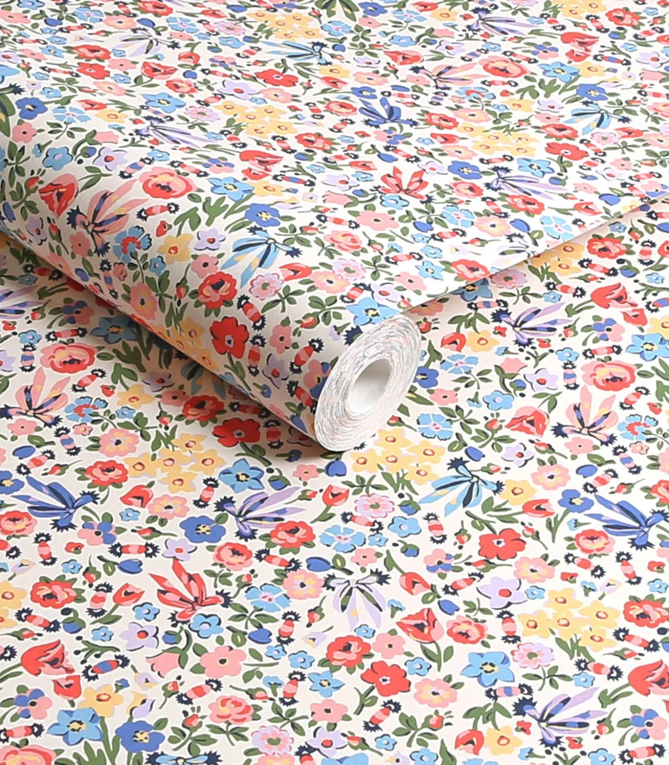 Harmony Ditsy Day is prachtig helder en modern vormgegeven, maar heeft toch de authentieke charme van een Cath Kidston print. Het behang bestaat uit een weide met levendig gekleurde rozen, tulpen, narcissen, korenbloemen en madeliefjes, verweven met strikjes en groen, en wordt prachtig gecomplimenteerd door een gebroken witte achtergrond. Hierdoor is dit behang de perfecte keuze als je op zoek bent naar een heldere en vrouwelijke esthetiek.
