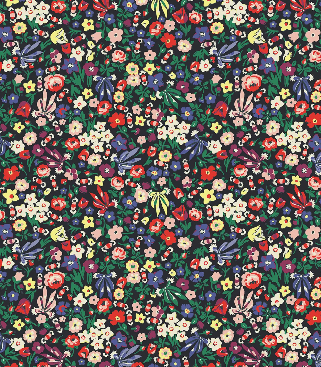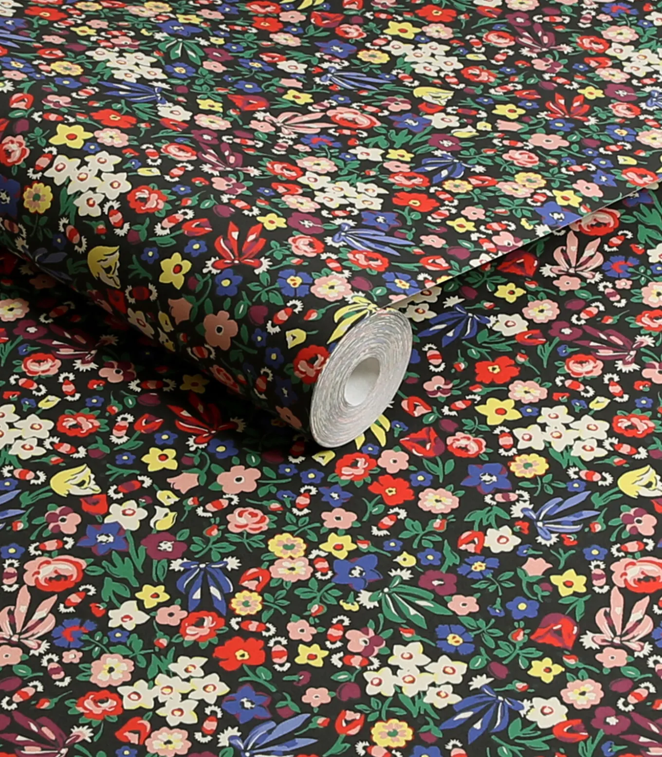 Harmony Ditsy Night is heerlijk helder en modern vormgegeven, maar heeft toch de authentieke charme van een Cath Kidston print. Met een weideachtig decor van levendig gekleurde rozen, tulpen, narcissen, korenbloemen en madeliefjes, verweven met strikken en groen, geaccentueerd door een zwarte achtergrond met houtskooltinten. Met dit matte behang creer je moeiteloos een leuke en unieke sfeer.