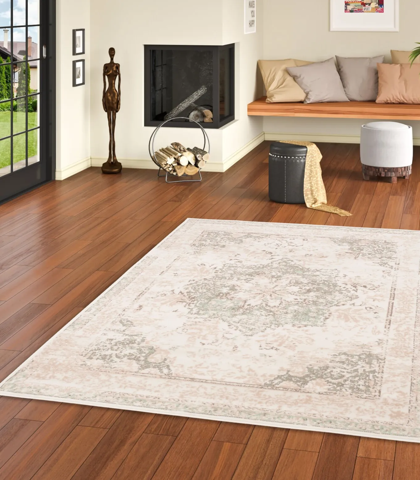 Dit design tapijt is een geweven tapijt in eigentijdse vintage patronen en trendy kleuren. Voor de productie wordt uitsluitend zacht en slijtvast polypropyleengaren gebruikt. Zowel het materiaal als de afwerking zijn bij alle vintage tapijten uiteraard onberispelijk en bijzonder gemakkelijk schoon te maken. Zoals al onze producten is het Pop–Vintage tapijt getest op schadelijke stoffen en is het milieuvriendelijk.