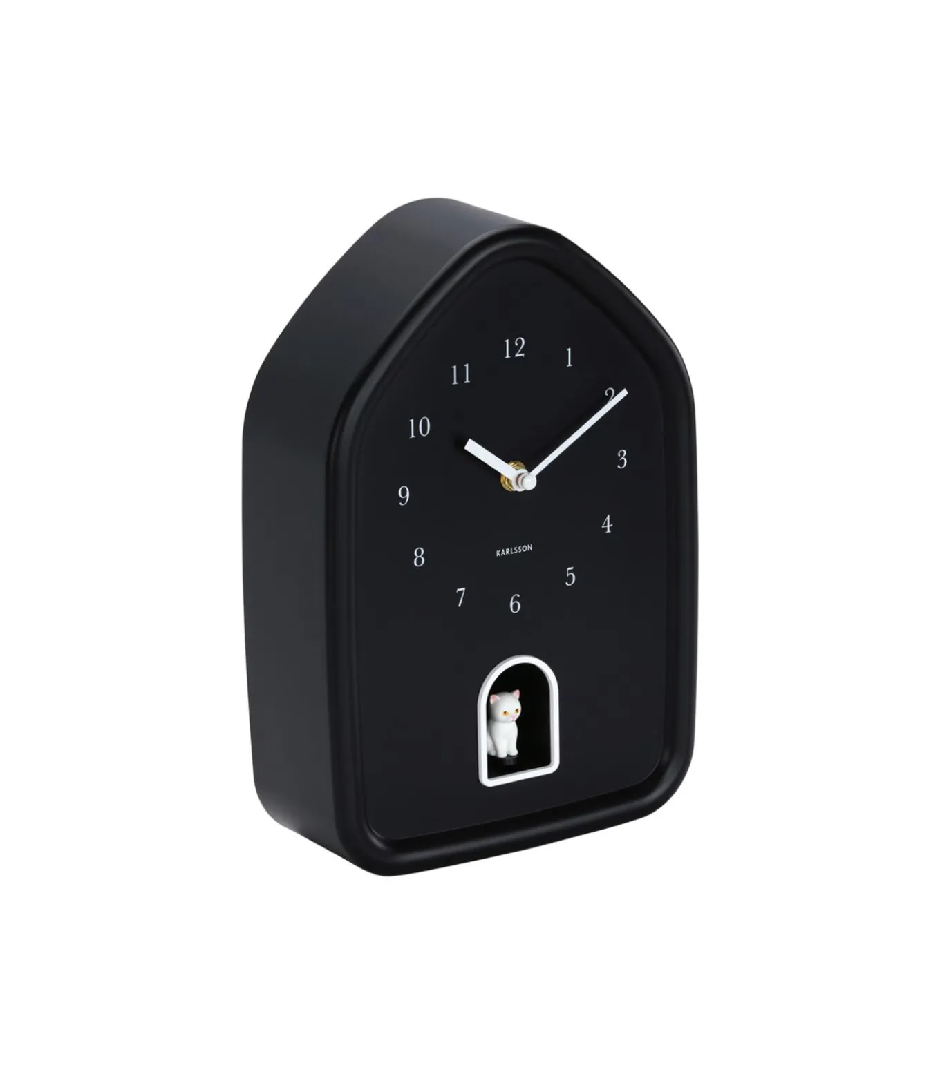 De Modern Kitty wandklok van Karlsson combineert eenvoud met een speels detail. Elk uur verschijnt er een schattig katje dat zacht miauwt. Het huisvormige design en de matte kleuren geven de klok een warme, moderne uitstraling. Perfect voor kattenfans en liefhebbers van strak design met een knipoog.