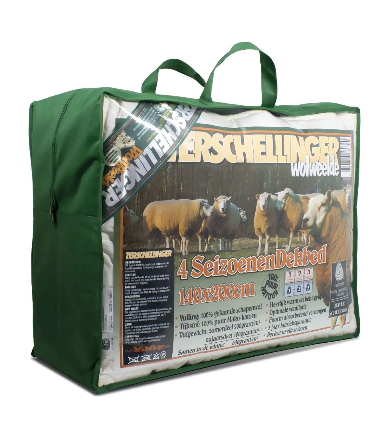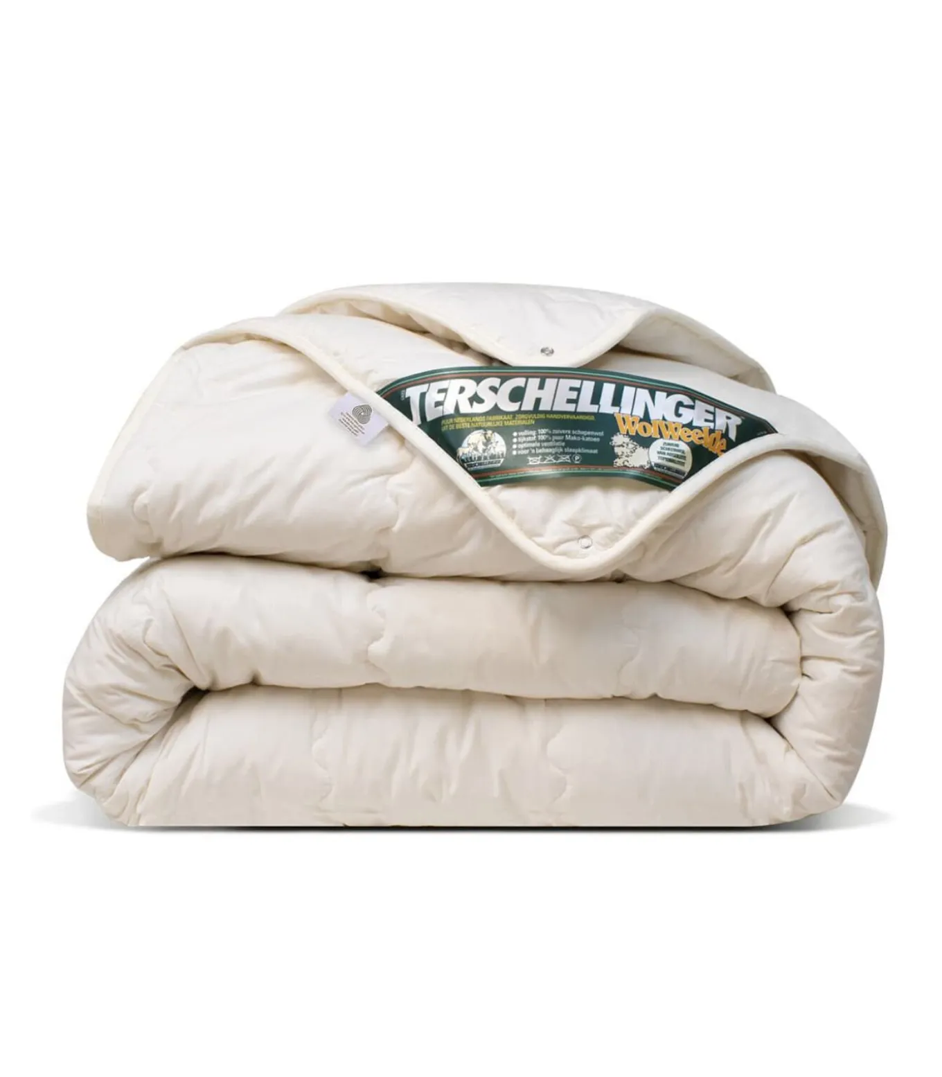De extreem gekroesde wol–kwaliteit vormt ’n luxe laag van miljoenen luchtkussentjes, die zorg dragen voor optimale ventilatie, onovertroffen vochtregulatie en een unieke warmtespreiding. De gekaarde wol wordt zo behandeld, dat alle natuurlijke ingrediënten (zoals Lanoline) behouden blijven, zodat de unieke werking van wol volledig gehandhaafd blijft. De dekbedden zijn volledig doorgestikt in banen, zodat de edele vulling nooit kan verschuiven en het dekbed soepel om het lichaam voegt. Terschellinger dekbedden zijn brandvertragend, vlamdovend enworden 3 jaar volledig gegarandeerd. Voorzien van sterke metalen drukknopen. Kortom:’n Ideaal dekbed voor zomer én winter van de hoogste kwaliteit. Van top tot teen natuurlijk comfort…