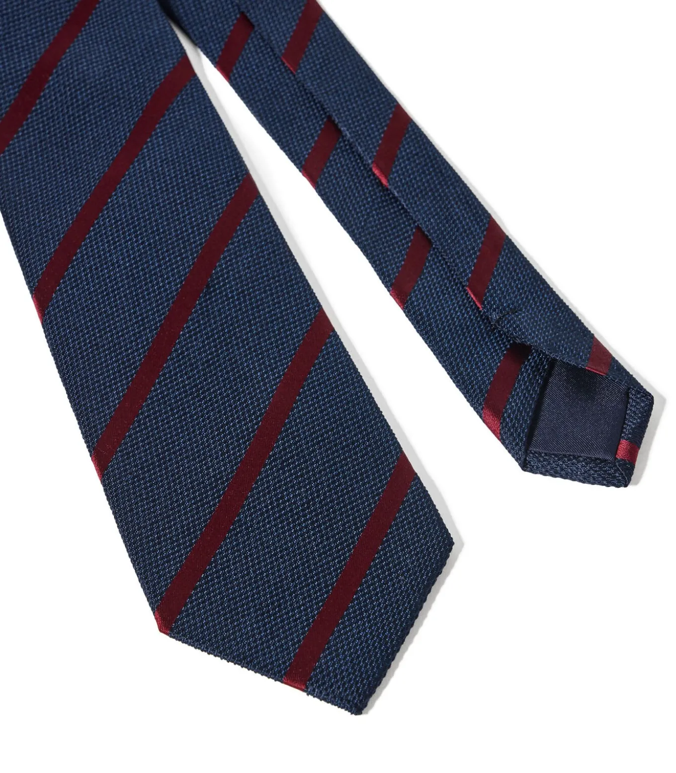 Deze zijden stropdas in bordeauxrode en blauwe tinten is perfect te combineren met eender welk hemd, met of zonder patroon, voor een exclusieve look. Ideaal voor elke gelegenheid, van formele evenementen tot casual etentjes. Geborduurd Polo Club–logo aan de achterzijde van de das en label met logo.