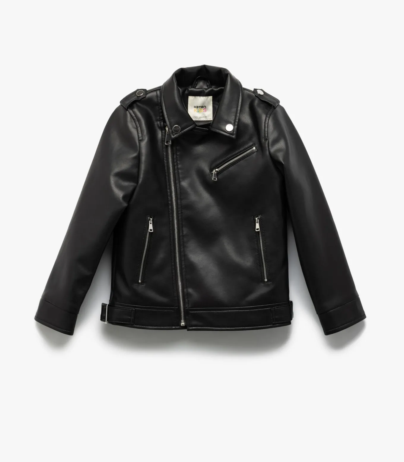 Geef je kind een stoere en moderne look met deze zwarte biker jas van kunstleer. De jas is voorzien van een kruiskraag en lange mouwen, en biedt praktische zakken met ritsen. Ideaal voor dagelijks gebruik of speciale gelegenheden, deze jas combineert stijl en comfort voor elk seizoen.