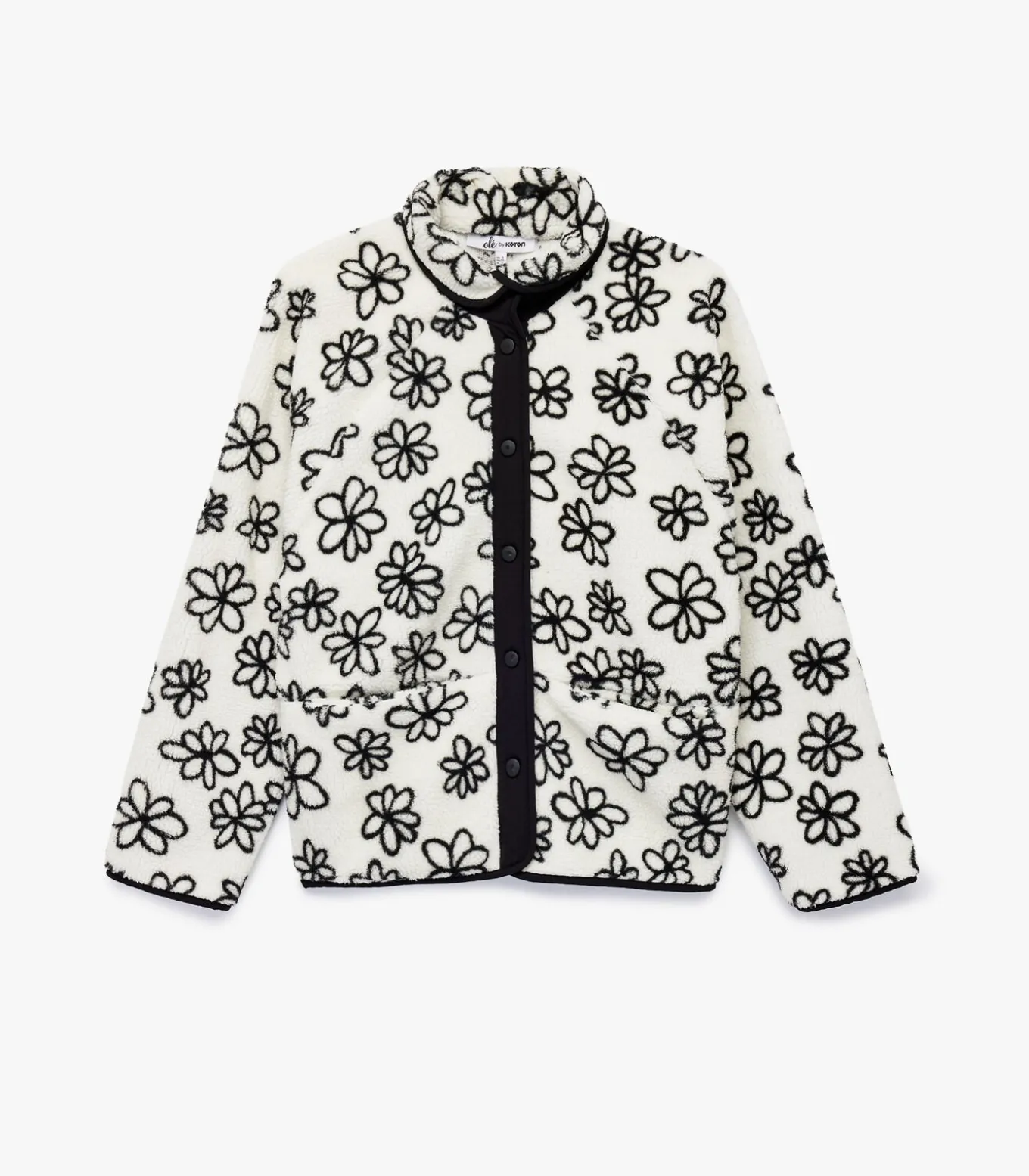 Deze zwarte fleece jas met bloemendessin biedt een stijlvolle en comfortabele aanvulling op je garderobe. Het stuk is ontworpen met een hoge kraag en lange mouwen voor extra bescherming tegen de kou. De moderne bloemenprint geeft een eigentijdse uitstraling, terwijl de zakdetails praktische bruikbaarheid toevoegen. Combineer met een spijkerbroek en sneakers voor een casual look, of voeg een coltrui toe voor extra warmte tijdens de koudere maanden.
