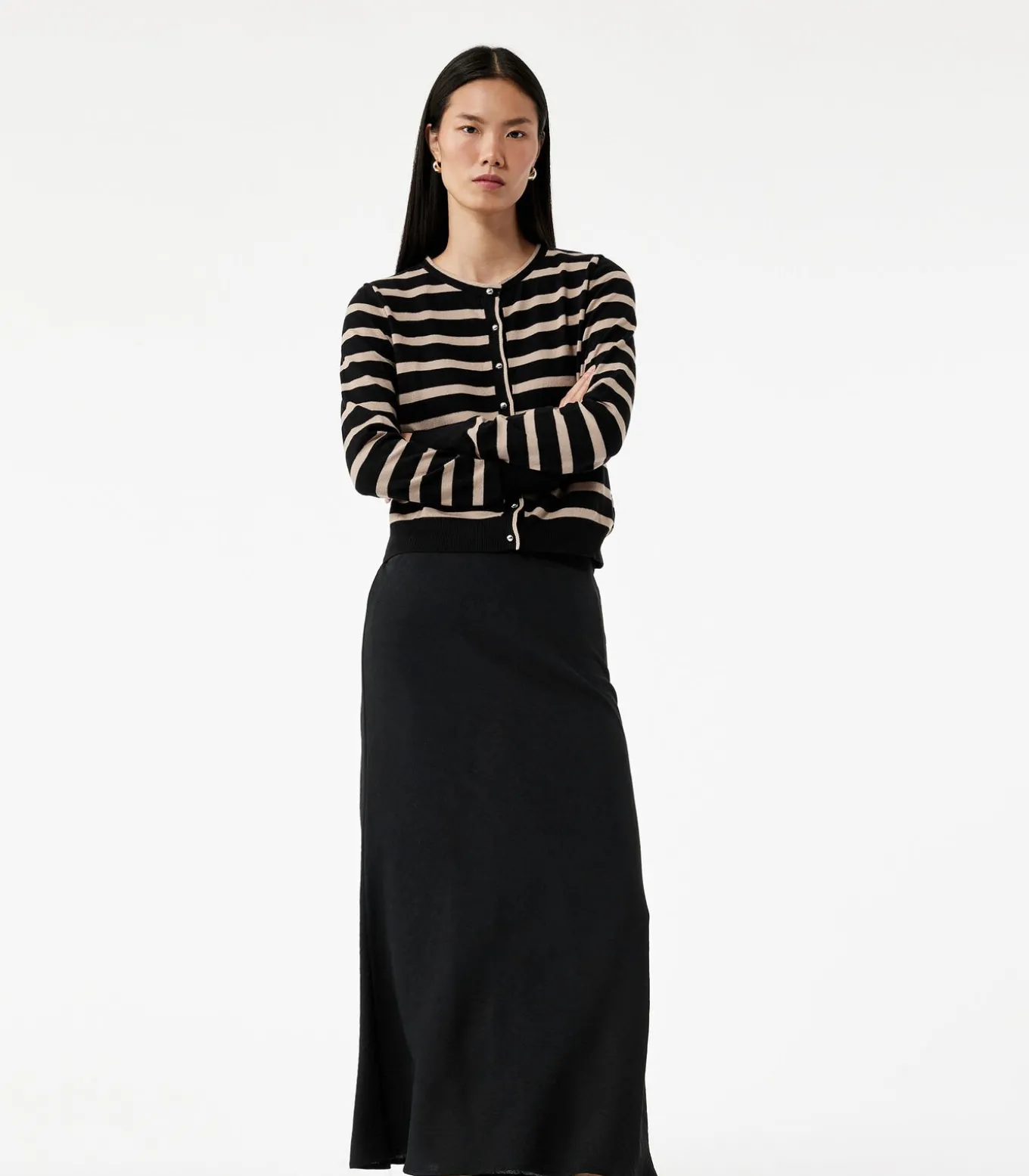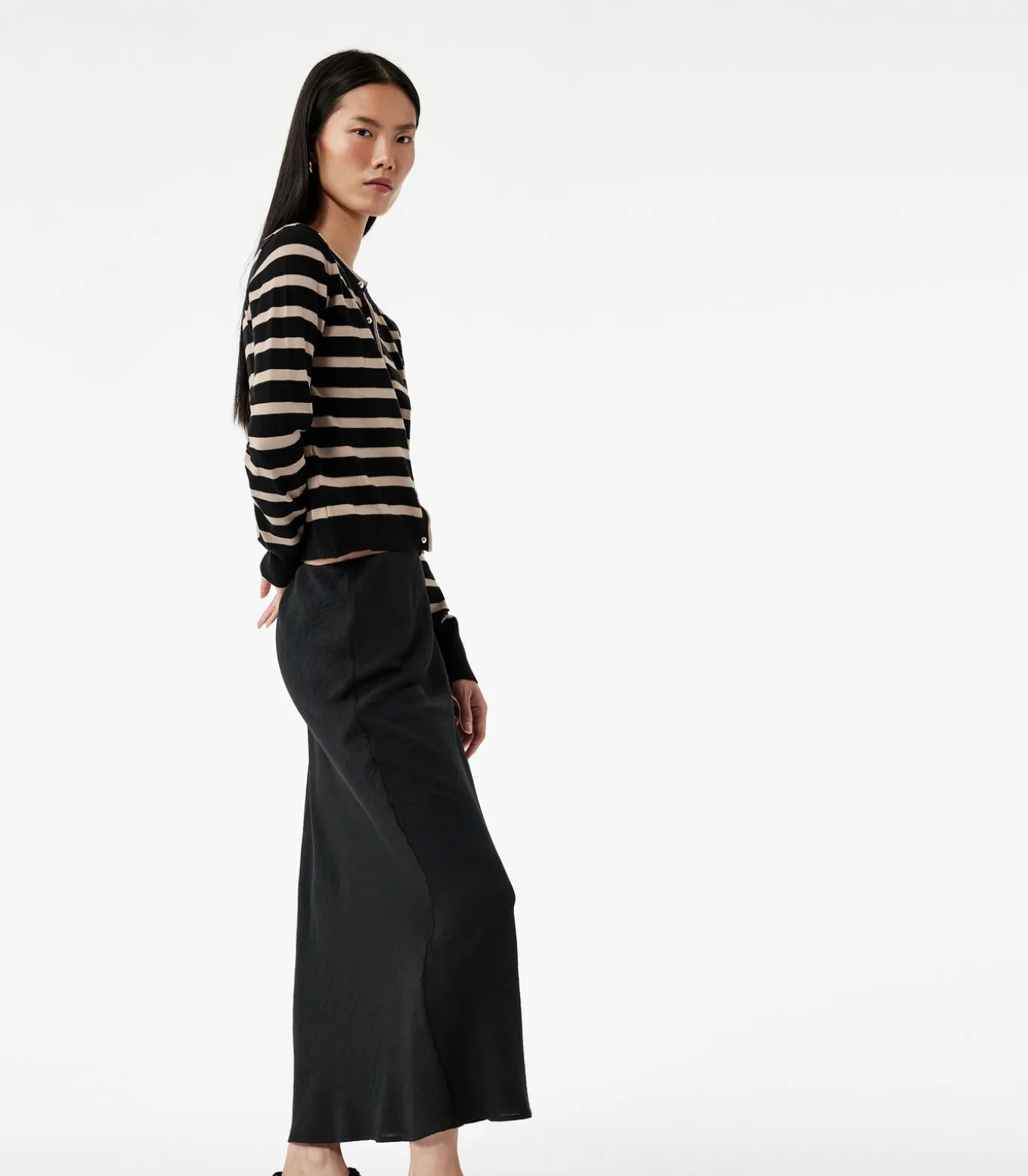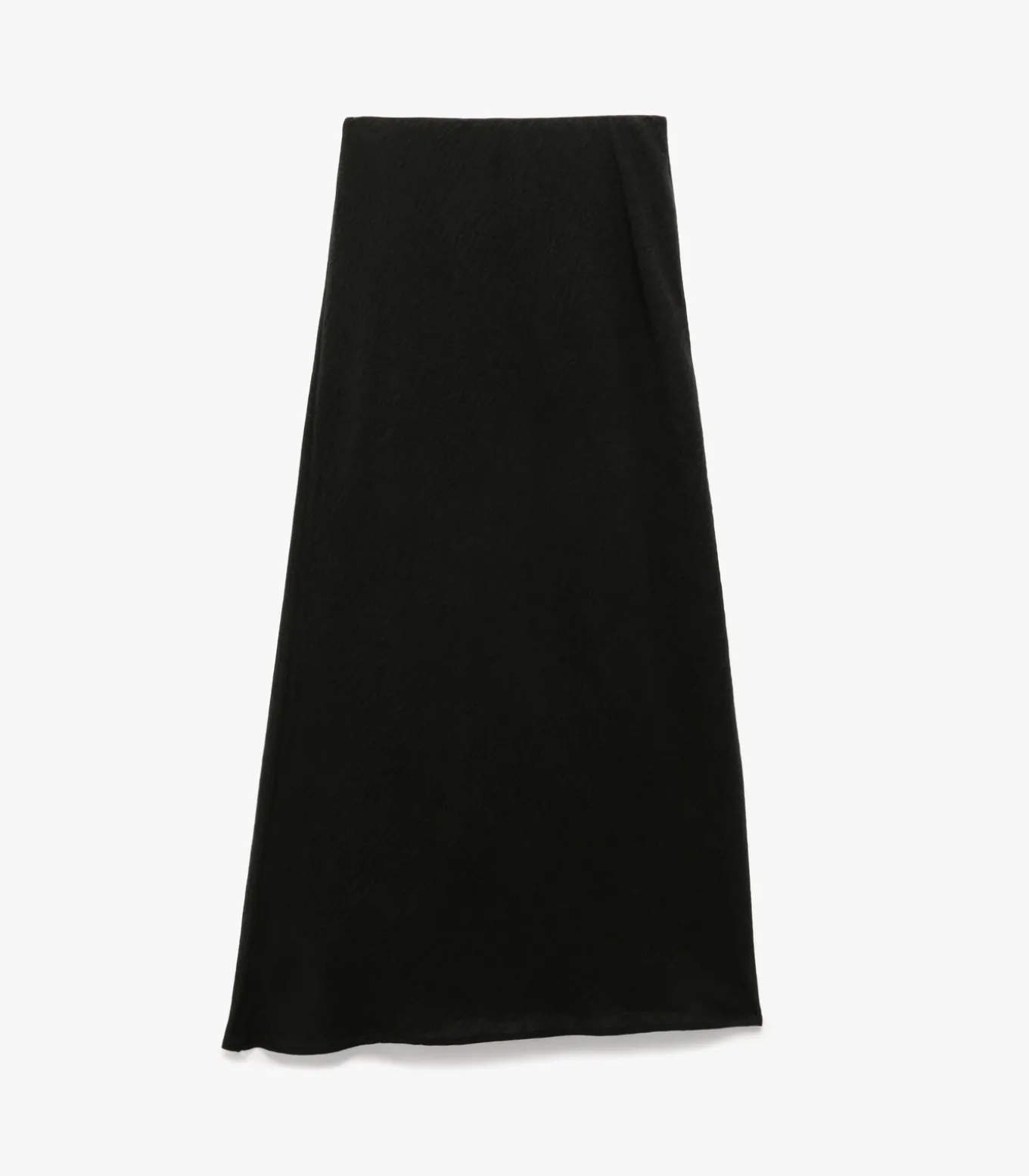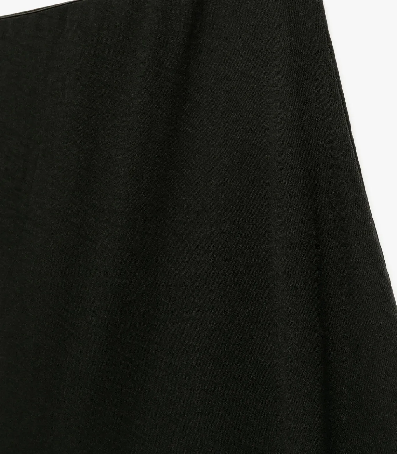 Deze elegante zwarte midi–rok biedt een verfijnde uitstraling voor zowel dagelijks gebruik als speciale gelegenheden. Gemaakt van licht en soepelvallend materiaal, voegt deze rok een vleugje elegantie toe aan je garderobe. De standaard taille en het A–lijn ontwerp zorgen voor een comfortabele pasvorm die je bewegingsvrijheid niet beperkt. Gemakkelijk te combineren met verschillende tops voor een veelzijdige stijl.
