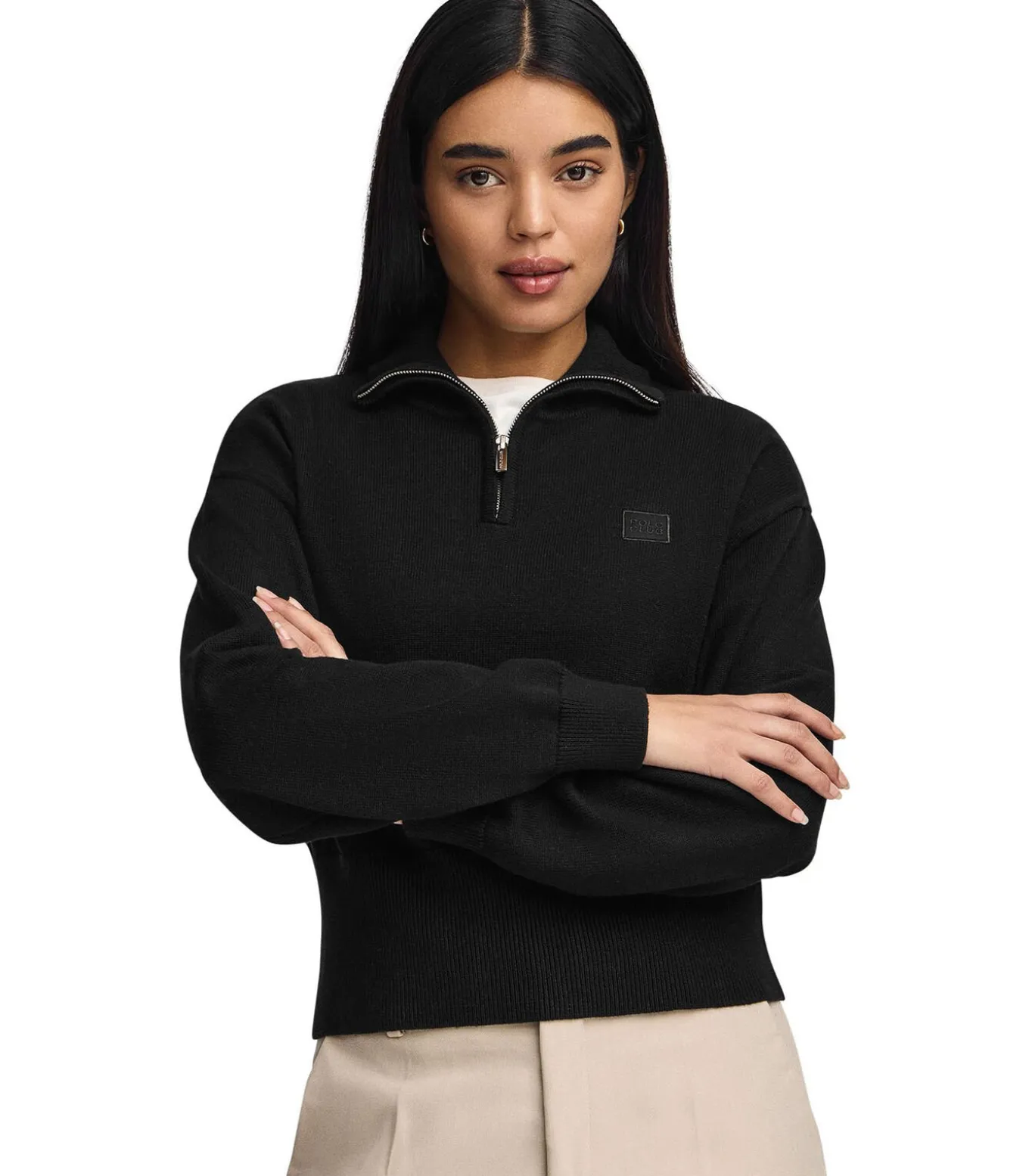 Damestrui met regular fit en halve rits. Gewoon effen en van katoen. Een ideale basic voor elke dag.