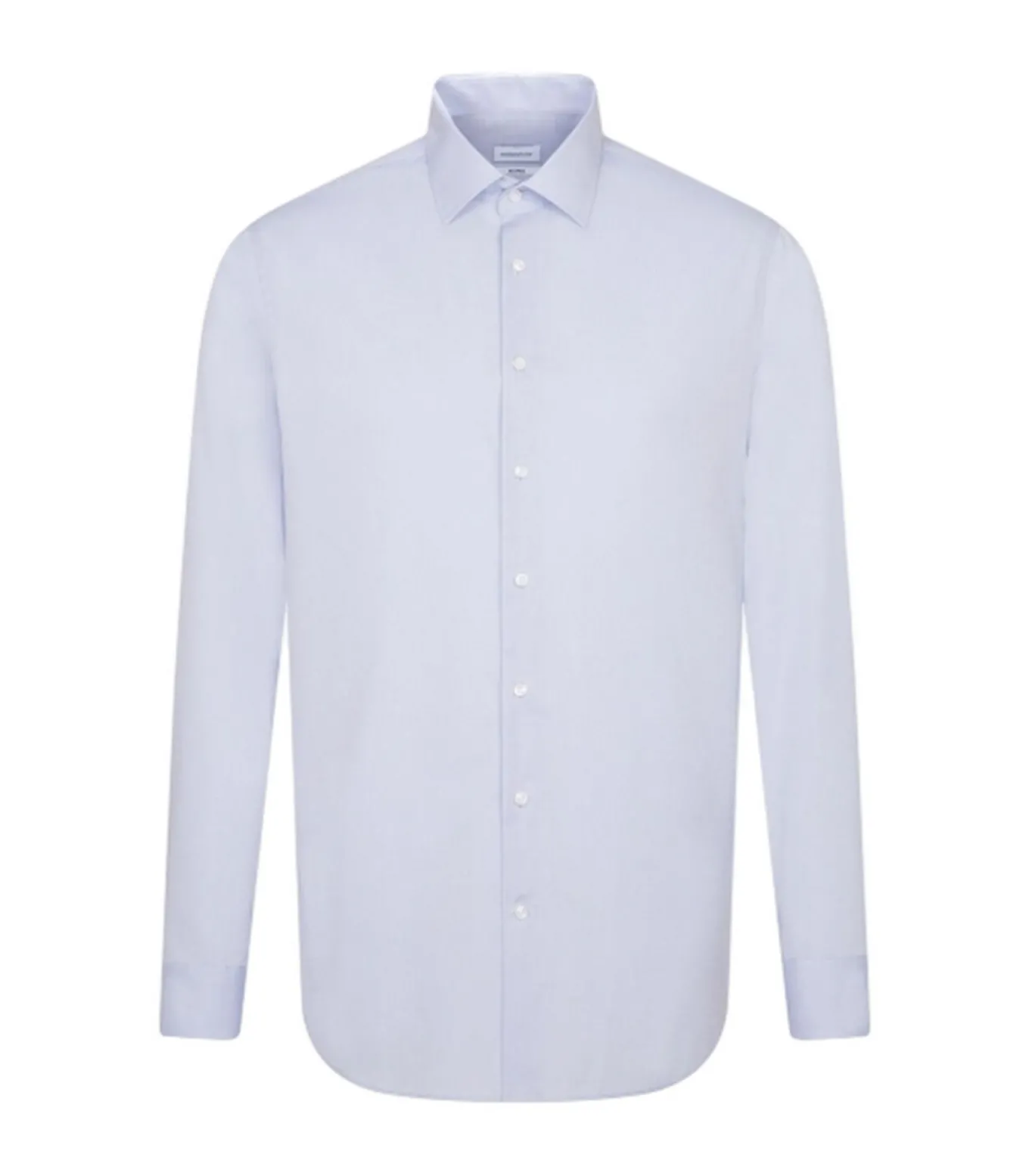 Het Seidensticker Herenoverhemd 1/1 Business Kent Kraag Gevormd Formeel Overhemd is een professioneel kledingstuk gemaakt van 100% katoen. Dit overhemd heeft een klassieke Kent kraag en lange mouwen met knoopmanchetten. De stof heeft een duurzame strijkvrije afwerking zodat het er de hele dag fris en kreukvrij uitziet. Aandacht voor detail is duidelijk zichtbaar in de dubbel gestikte naden en de twee reserveknopen op de sluiting. De voorgevormde pasvorm zorgt voor een getailleerd silhouet terwijl het gewicht van de stof van 125 g/m² zorgt voor een balans tussen ademend vermogen en structuur. Dit overhemd voldoet aan de Oeko–Tex Standard 100 certificering wat een duurzame en milieuvriendelijke productie garandeert.