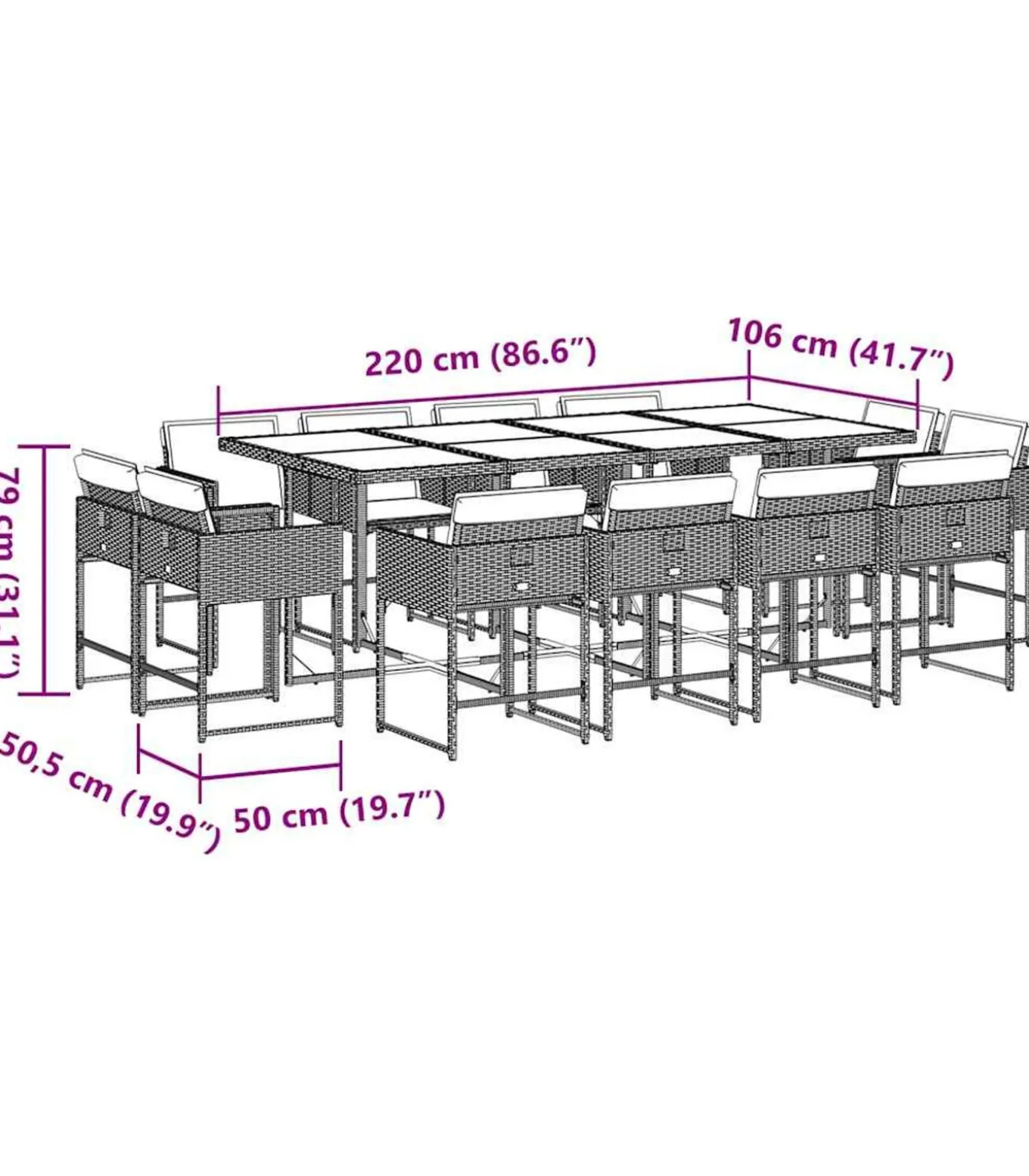Afmetingen: 220 x 106 x 73 cm (L x B x H)