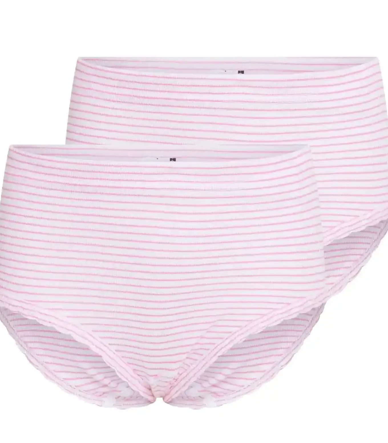 Aan de bovenkant omgezoomd met doorgeregen elastiek.