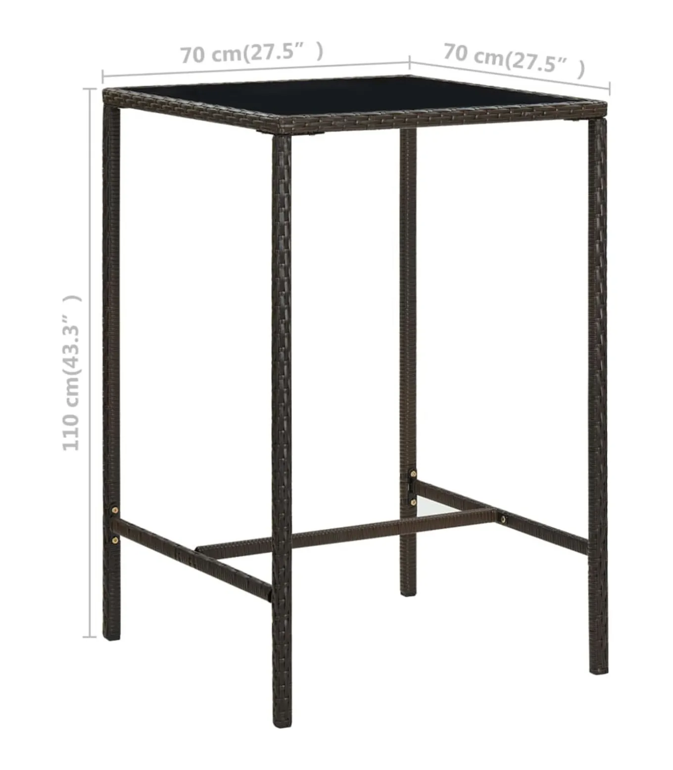 Deze bartafel heeft een gepoedercoat stalen frame dat is bedekt met weerbestendig PE–rattan, waardoor hij perfect is voor buitengebruik. Het gehard glazen tafelblad is eenvoudig schoon te maken. De barkrukken hebben een sterke stalen frameconstructie en zijn gemaakt van weerbestendig PE–rattan, daardoor zijn ze stabiel en gemakkelijk te verplaatsen. Het zitkussen en de ingebouwde voetensteun maken de kruk extra comfortabel.