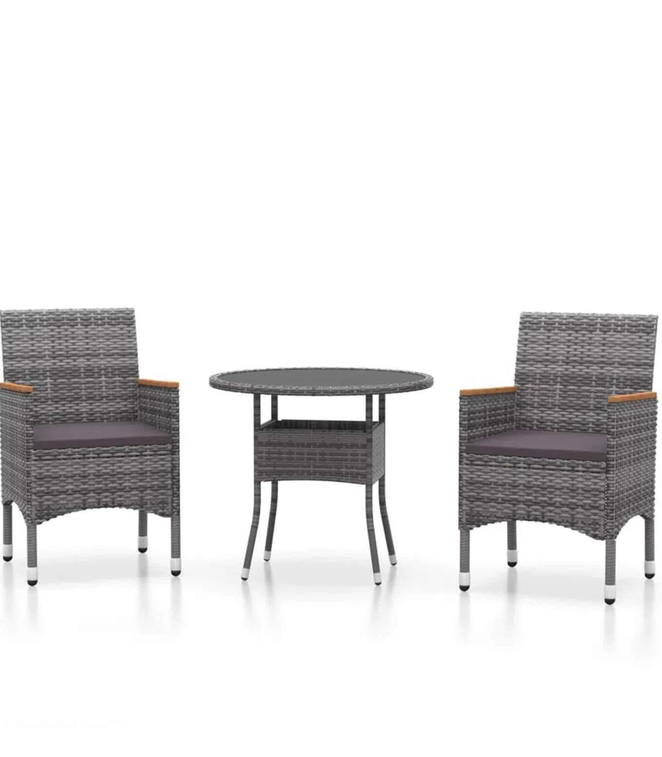 De meubelset heeft een gepoedercoat stalen frame die met poly rattan omwikkeld is, waardoor hij zeer duurzaam is. Het tafelblad is gemaakt van gehard glas, waardoor hij eenvoudig schoon te maken is. Dankzij de dik gevoerde kussens biedt hij ultiem zitcomfort.