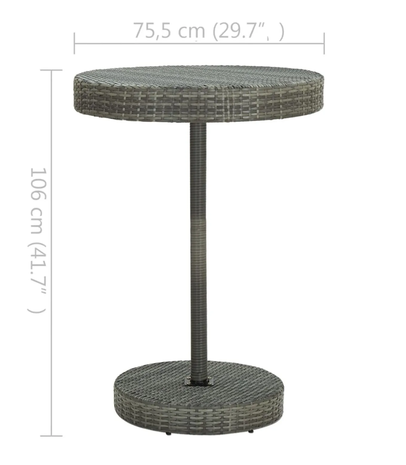 Afmetingen tafel: 75,5 x 106 cm (ø x H)